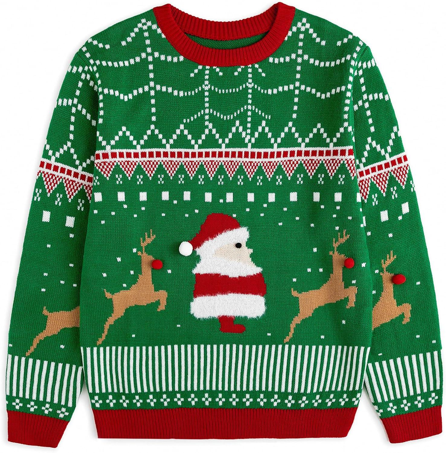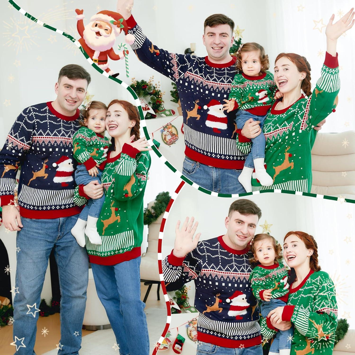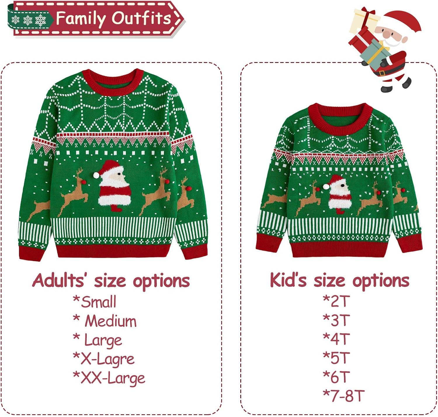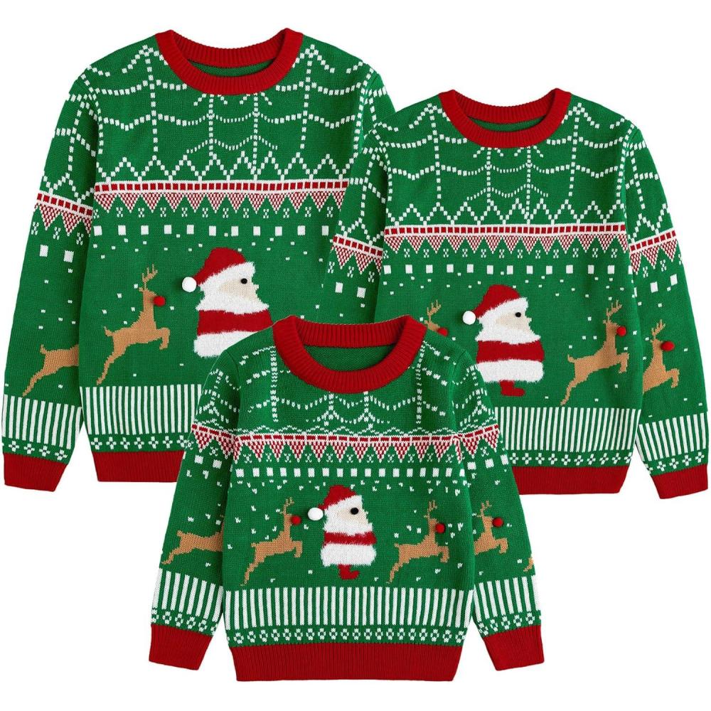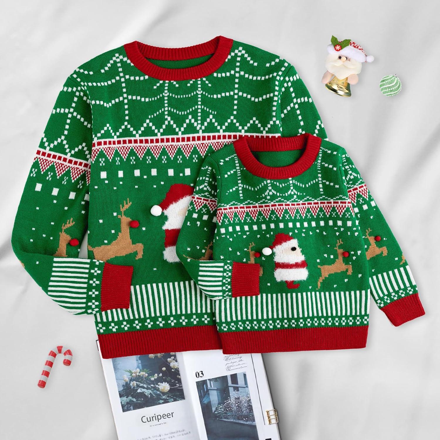 Curipeer Ugly Family Matching Christmas Sweaters Men Women Kids Knitted Pullover Outfits Party Holiday(A-santa-green)