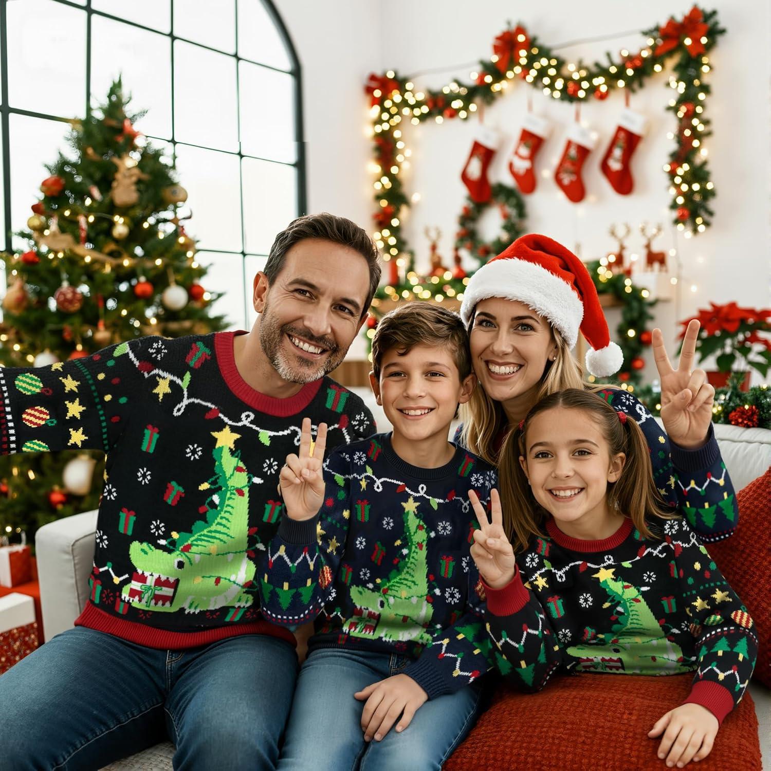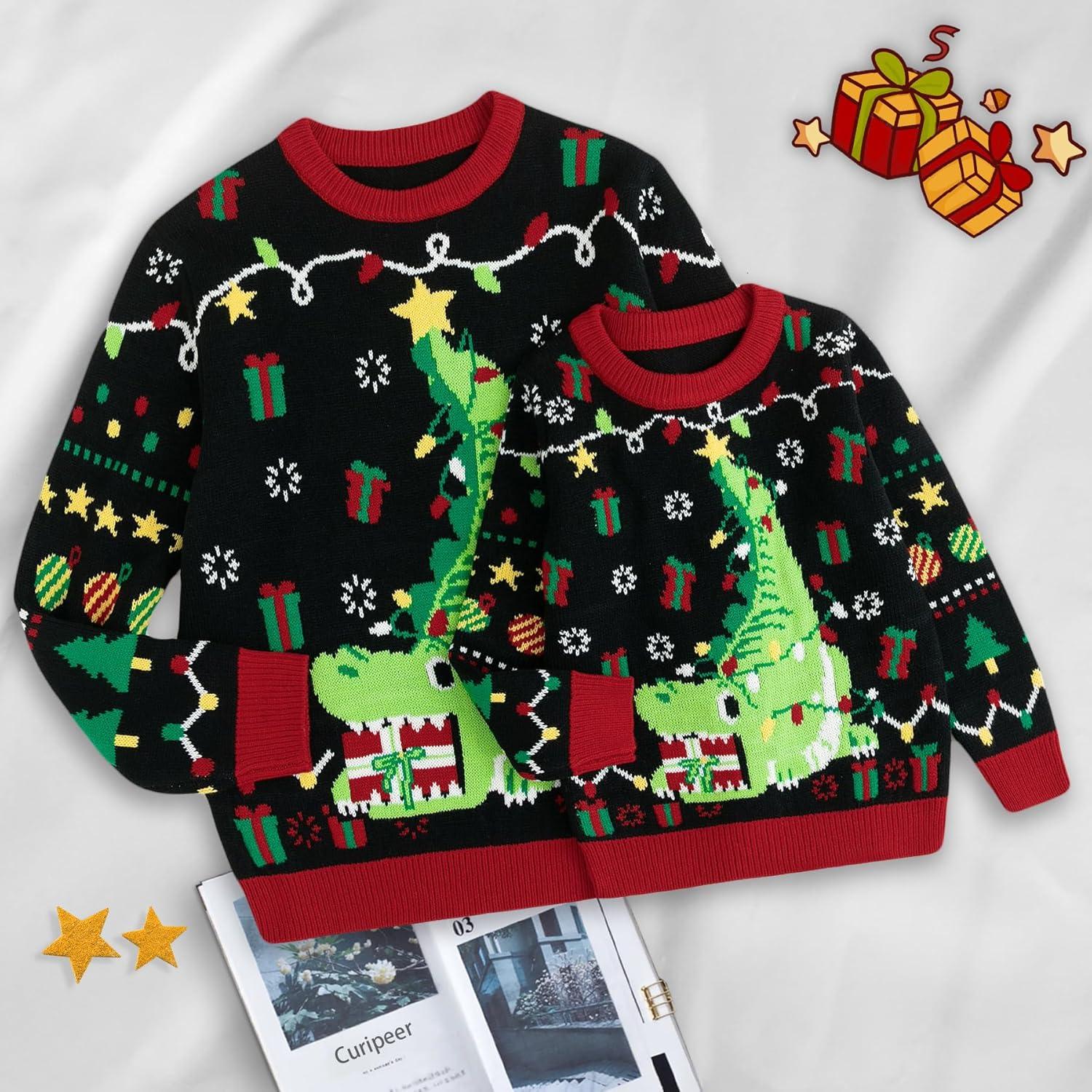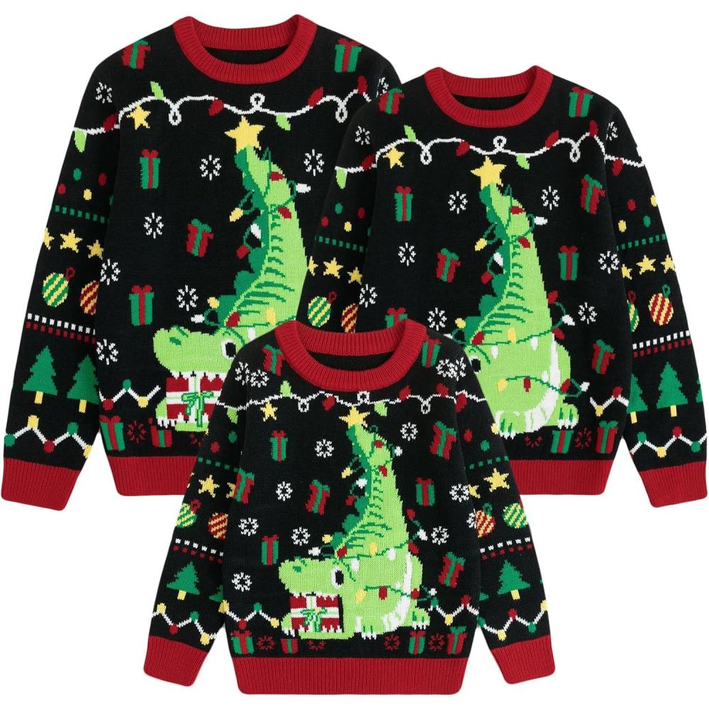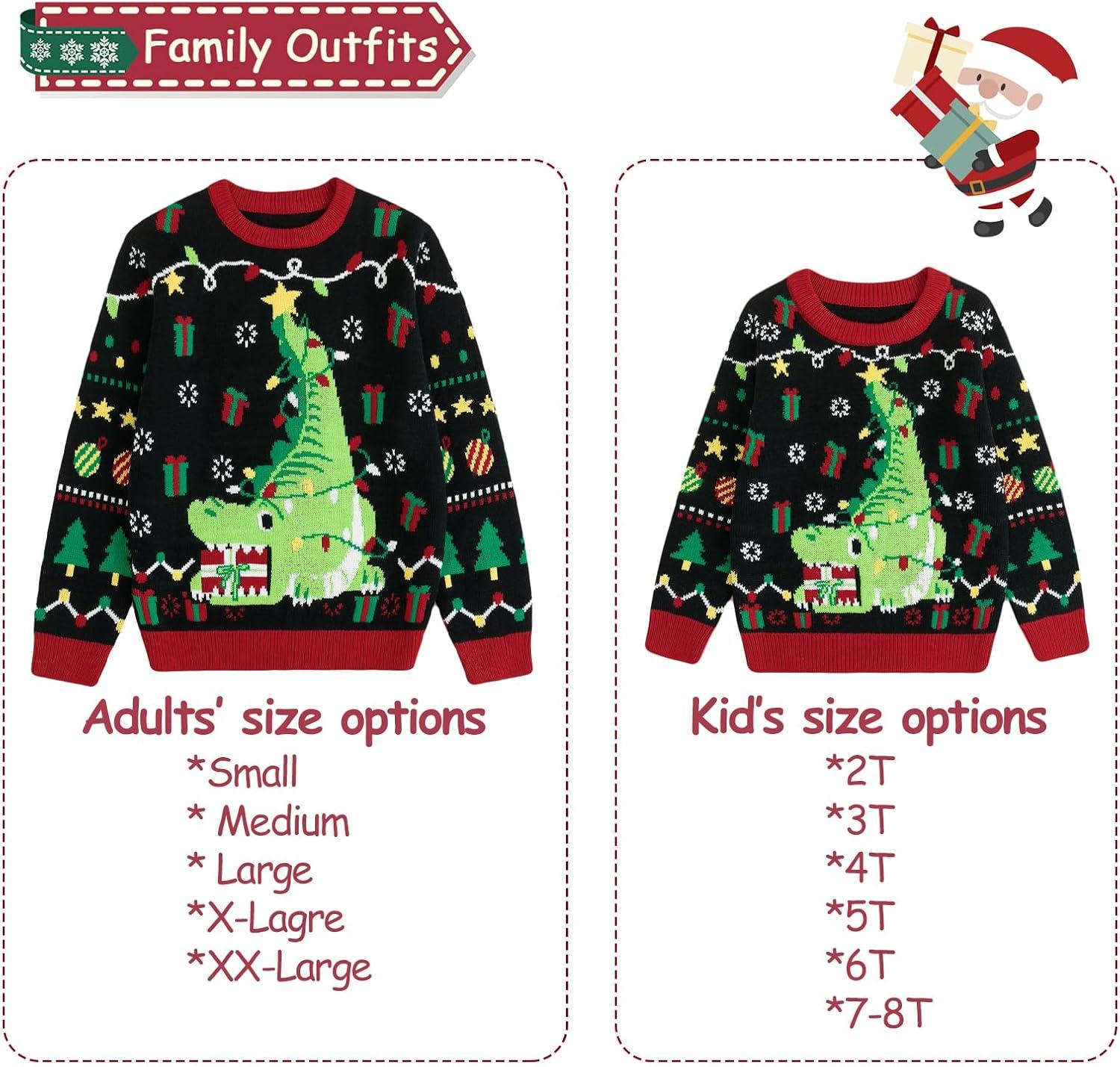 Curipeer Ugly Family Matching Christmas Sweaters Men Women Kids Knitted Pullover Outfits Party Holiday(B-crocodile-black)