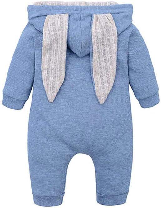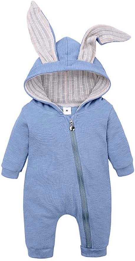 Simplee kids Animal Bunny Baby Easter Romper Long Ear Rabbit Hoodie Romper Jumpsuit with Zipper(A-f-sky Blue)