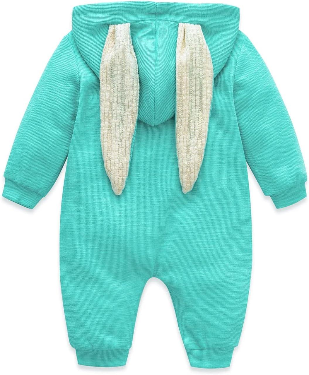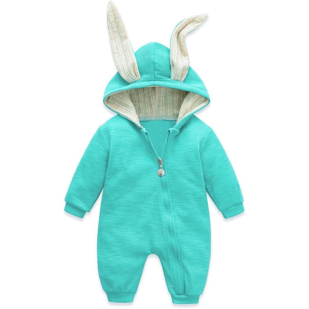 Simplee kids Animal Bunny Baby Easter Romper Long Ear Rabbit Hoodie Romper Jumpsuit with Zipper(A-k-blue Turquoise)