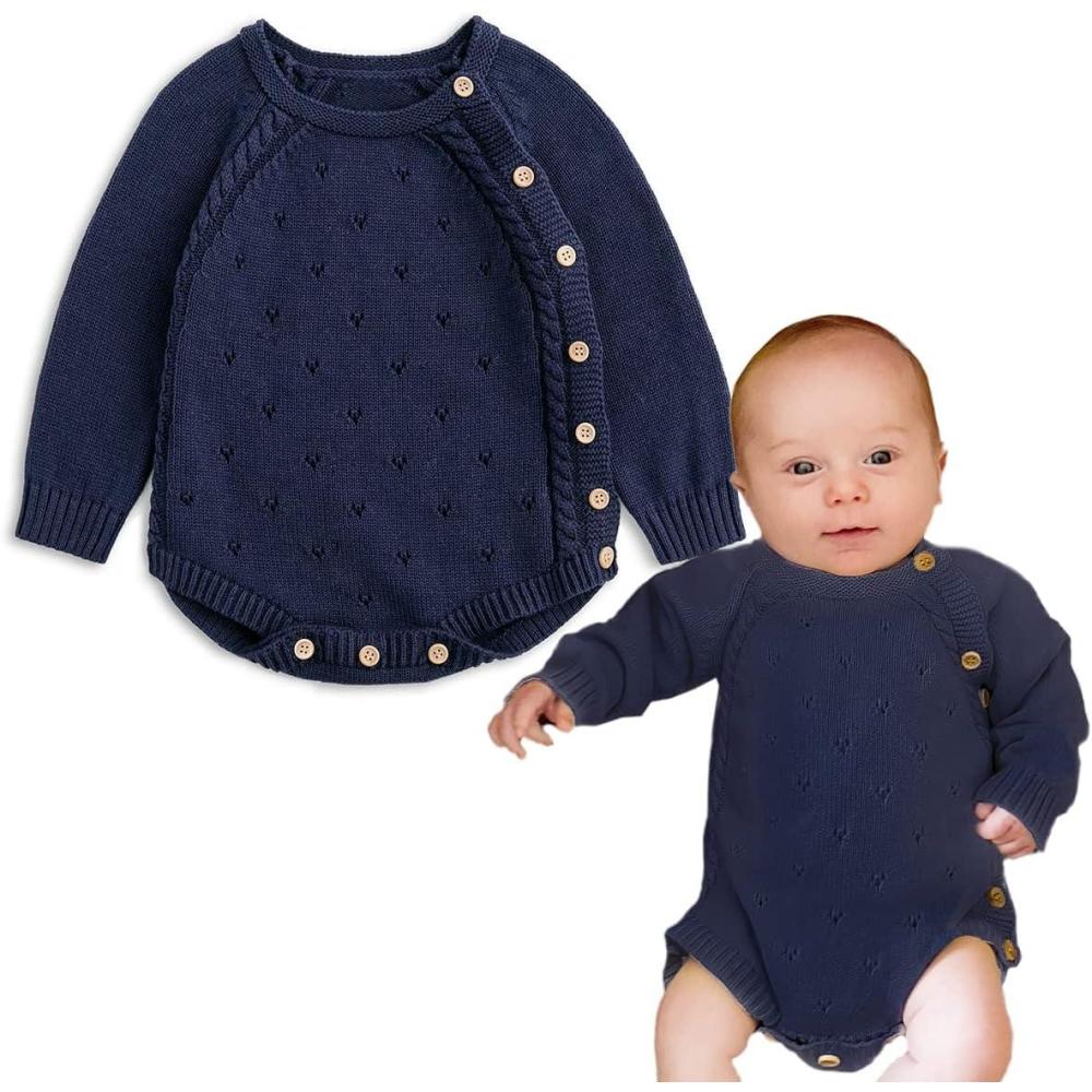 Simplee kids Baby Boys’ Girls’ Knitted Romper Jumpsuit Long Sleeve Onesie Bodysuits One Piece Outfits Sweater(A- E Blue)