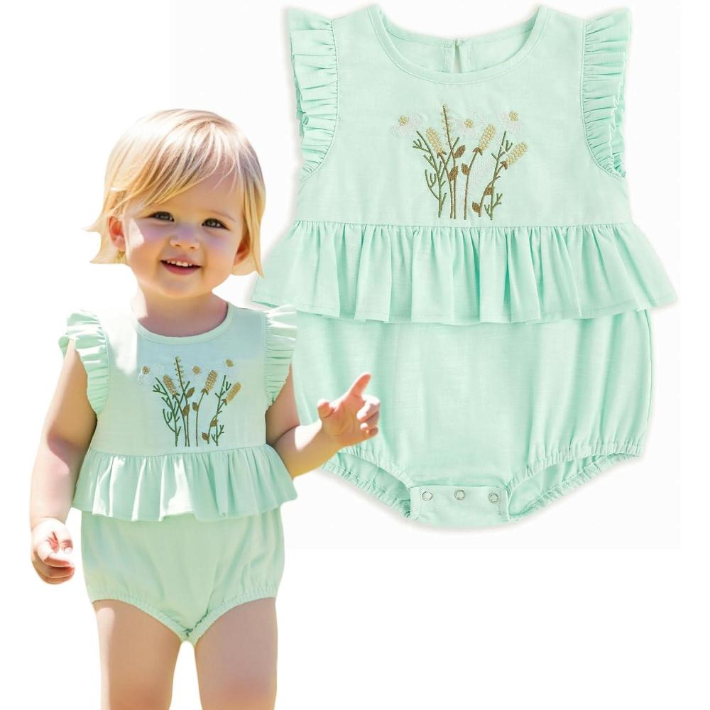Simplee kids Baby Boys Girls Ruffle Romper Summer Outfit Jumpsuit Linen Bodysuits(B-b-mint Green)