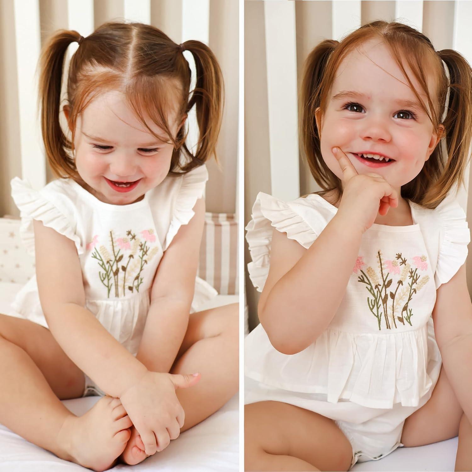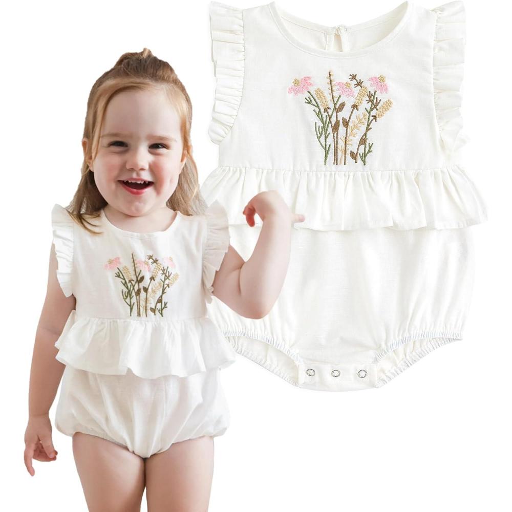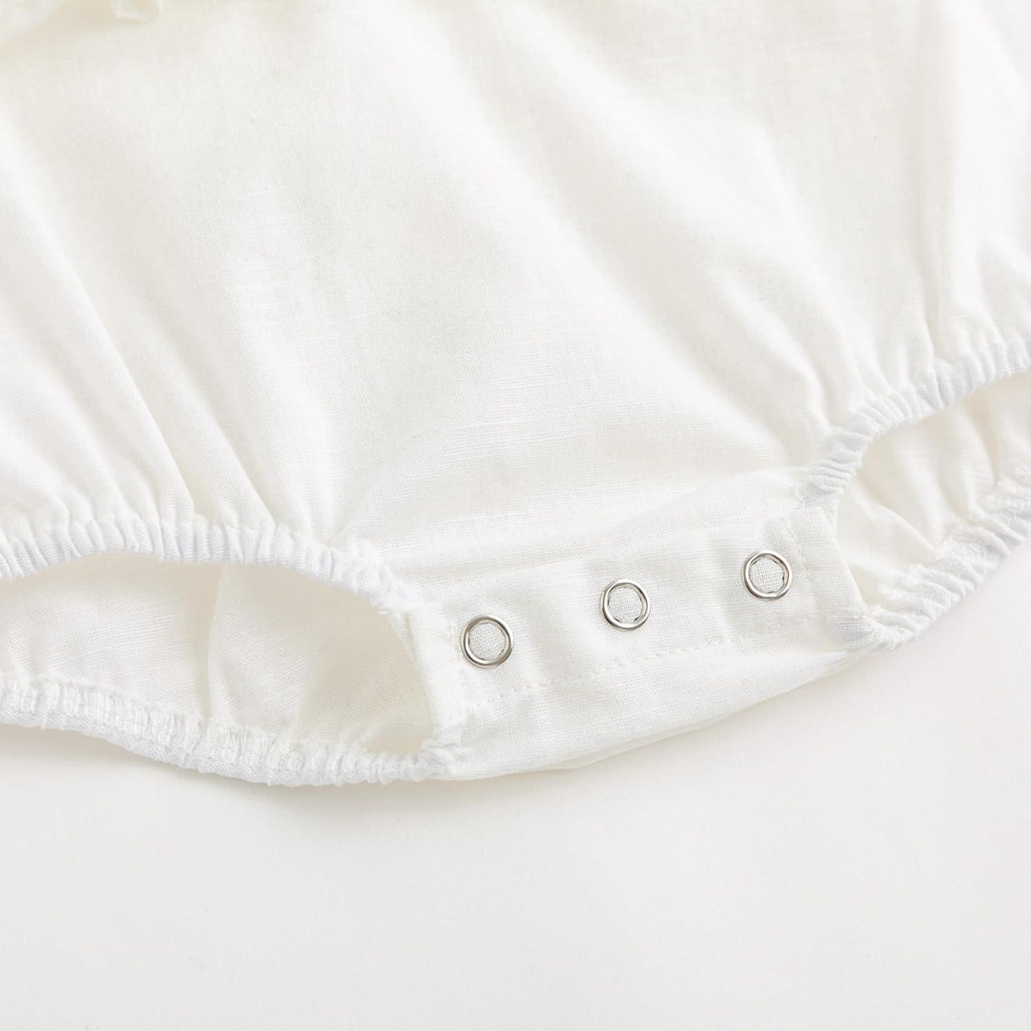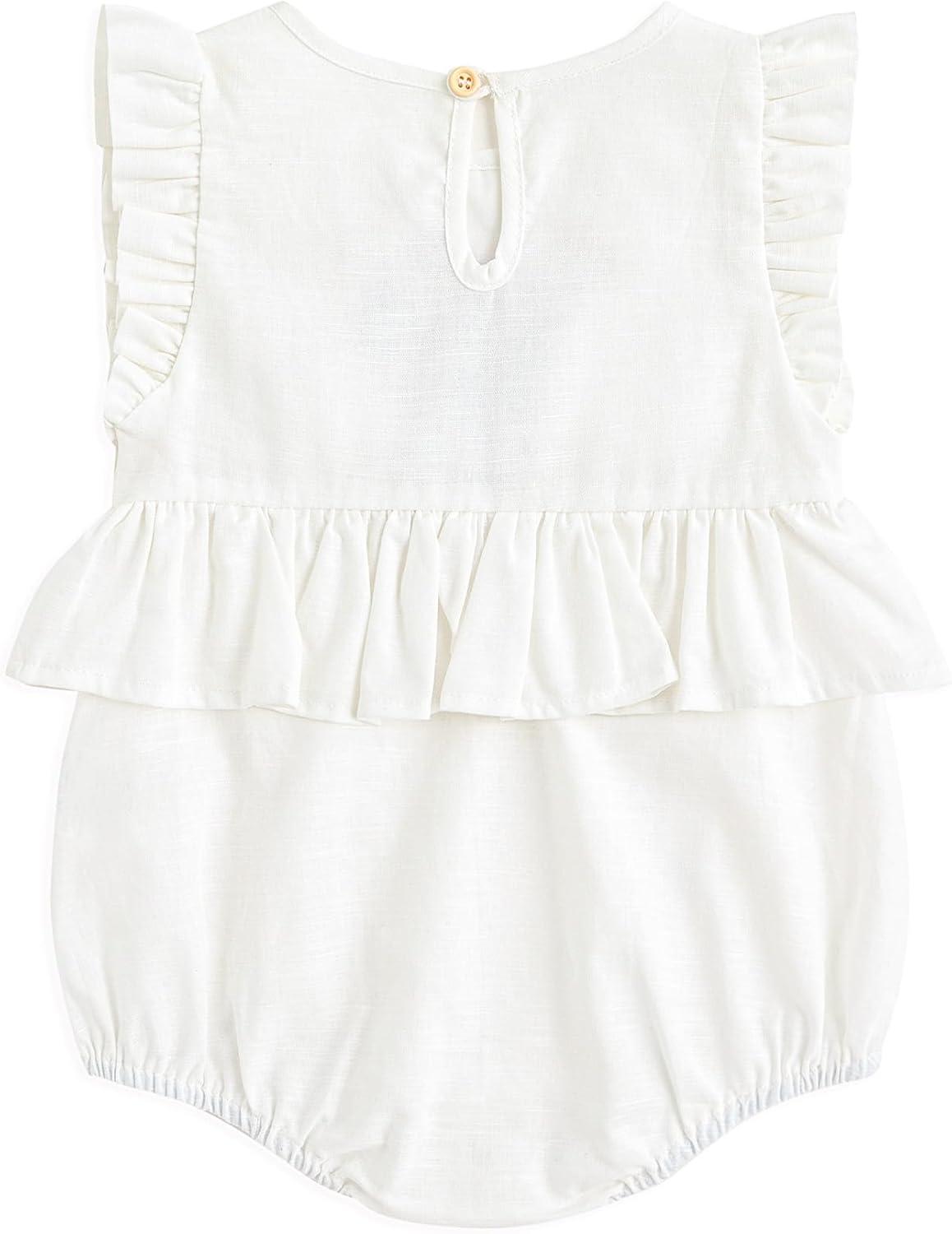 Simplee kids Baby Boys Girls Ruffle Romper Summer Outfit Jumpsuit Linen Bodysuits(B-b-white)