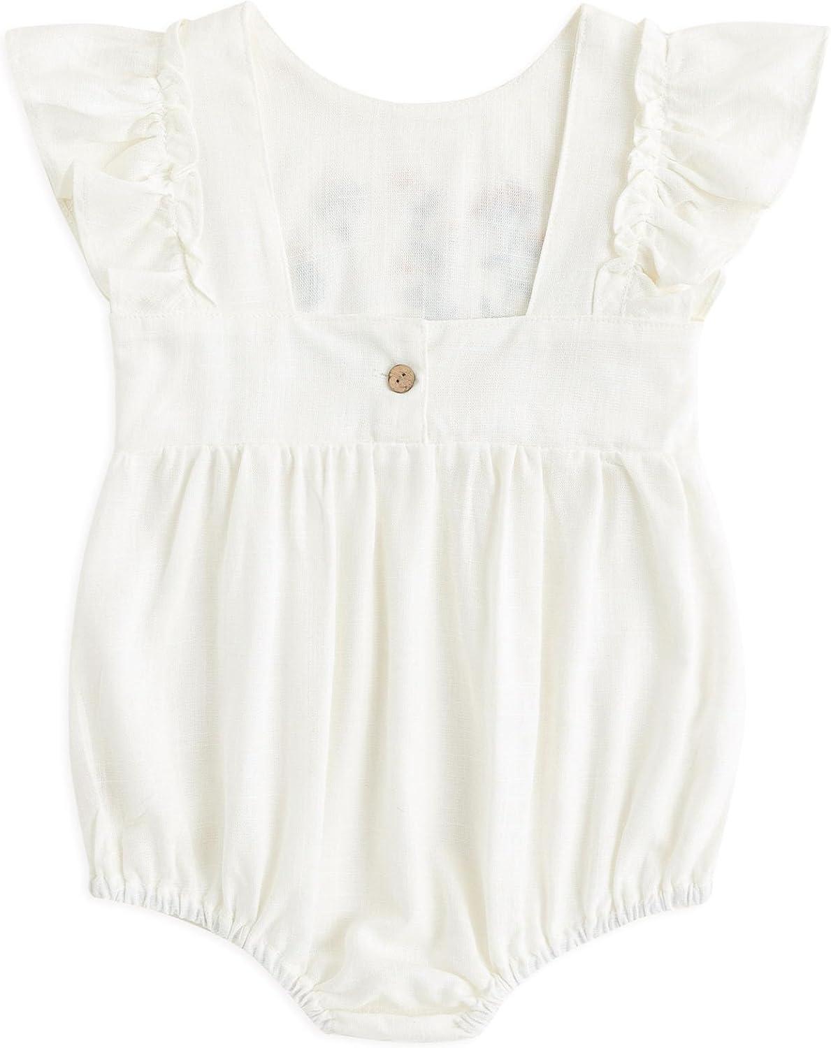 Simplee kids Baby Boys Girls Ruffle Romper Summer Outfit Jumpsuit Linen Bodysuits(White)