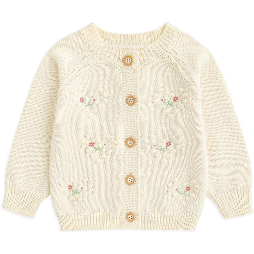 Simplee kids Baby Girl Knit Cardigan Sweater Cream Cotton Autumn Coat(B-white Heart)