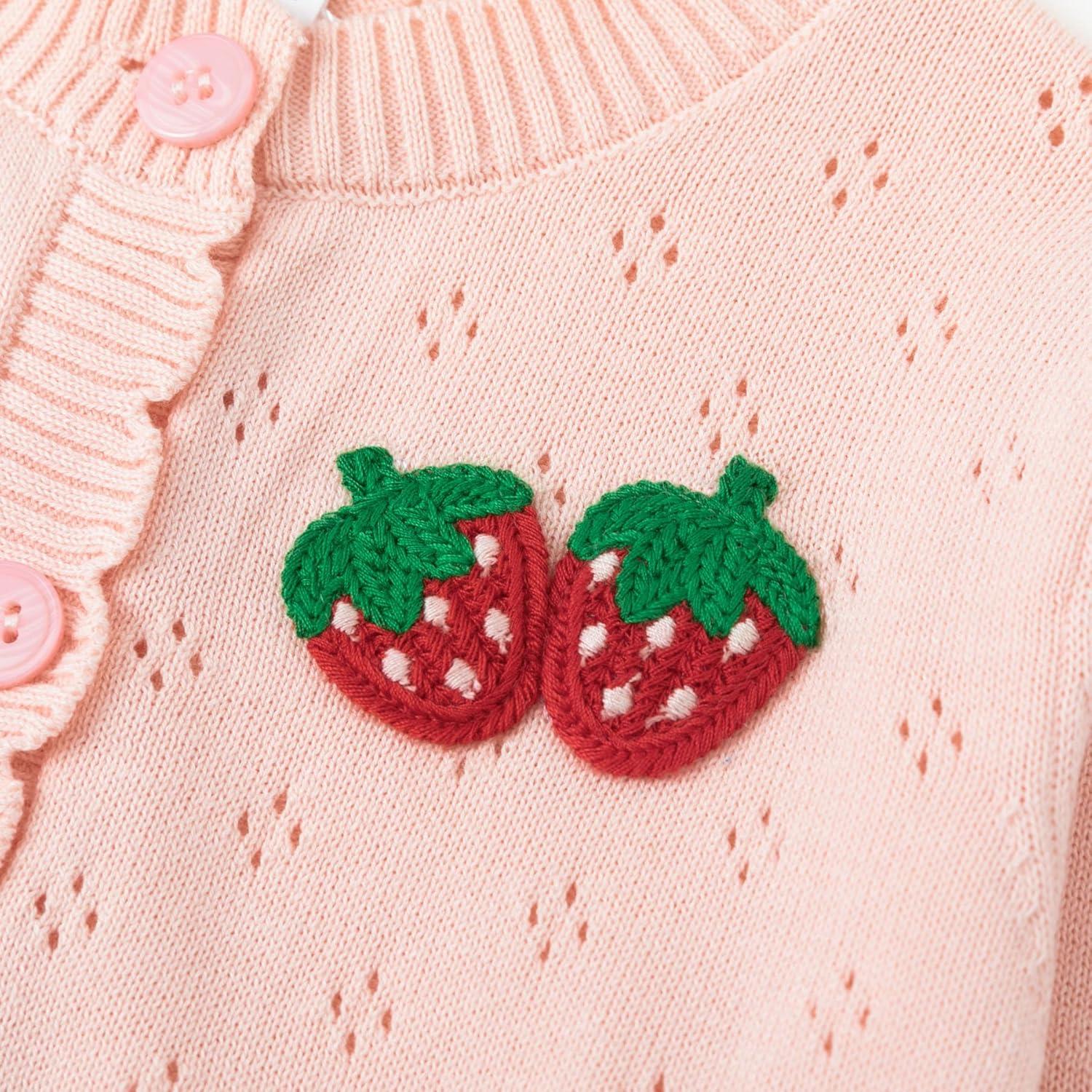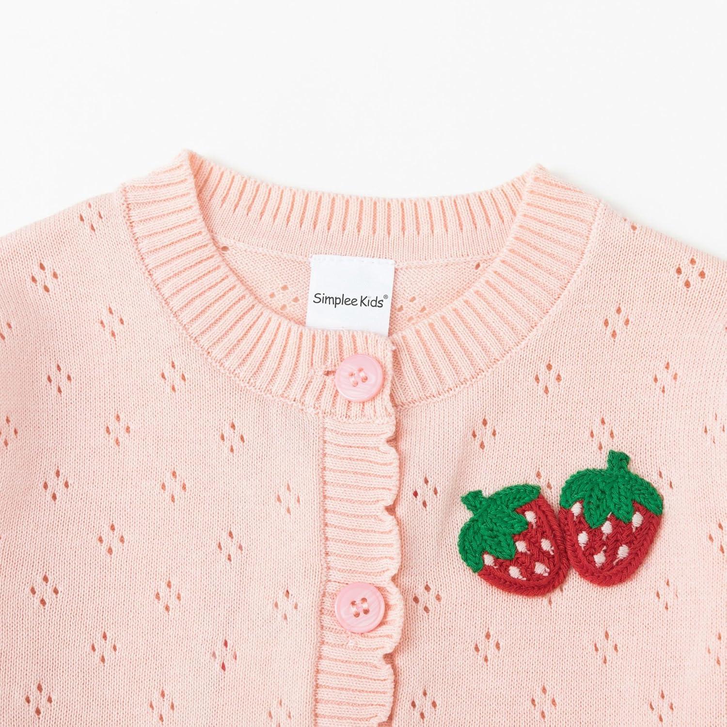 Simplee kids Baby Girl Knit Cardigan Sweater Cream Cotton Autumn Coat(A-pink Strawberry)
