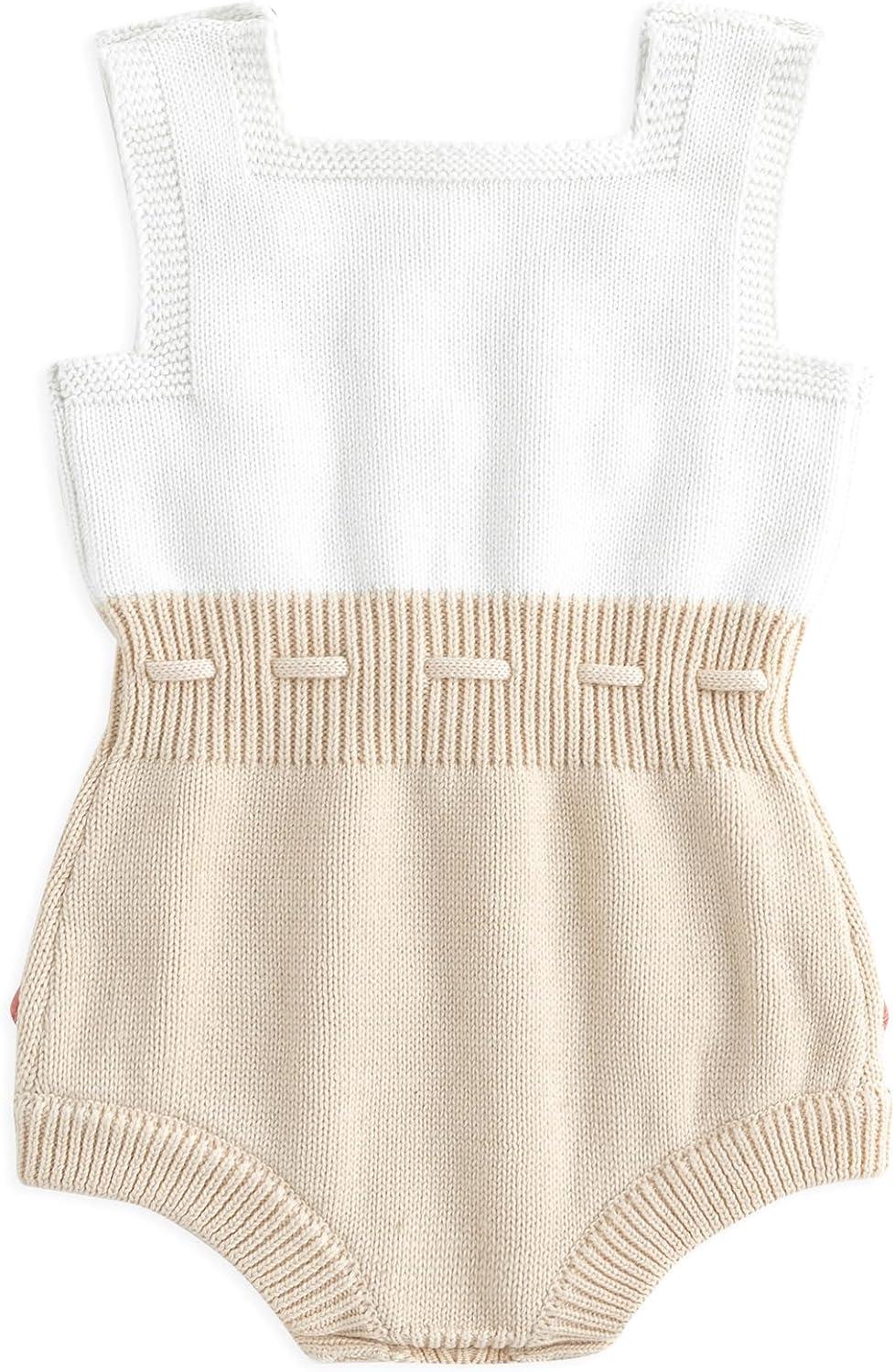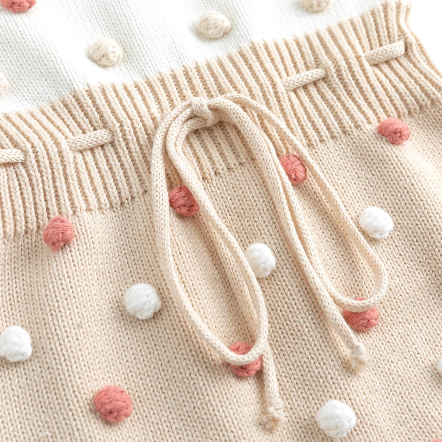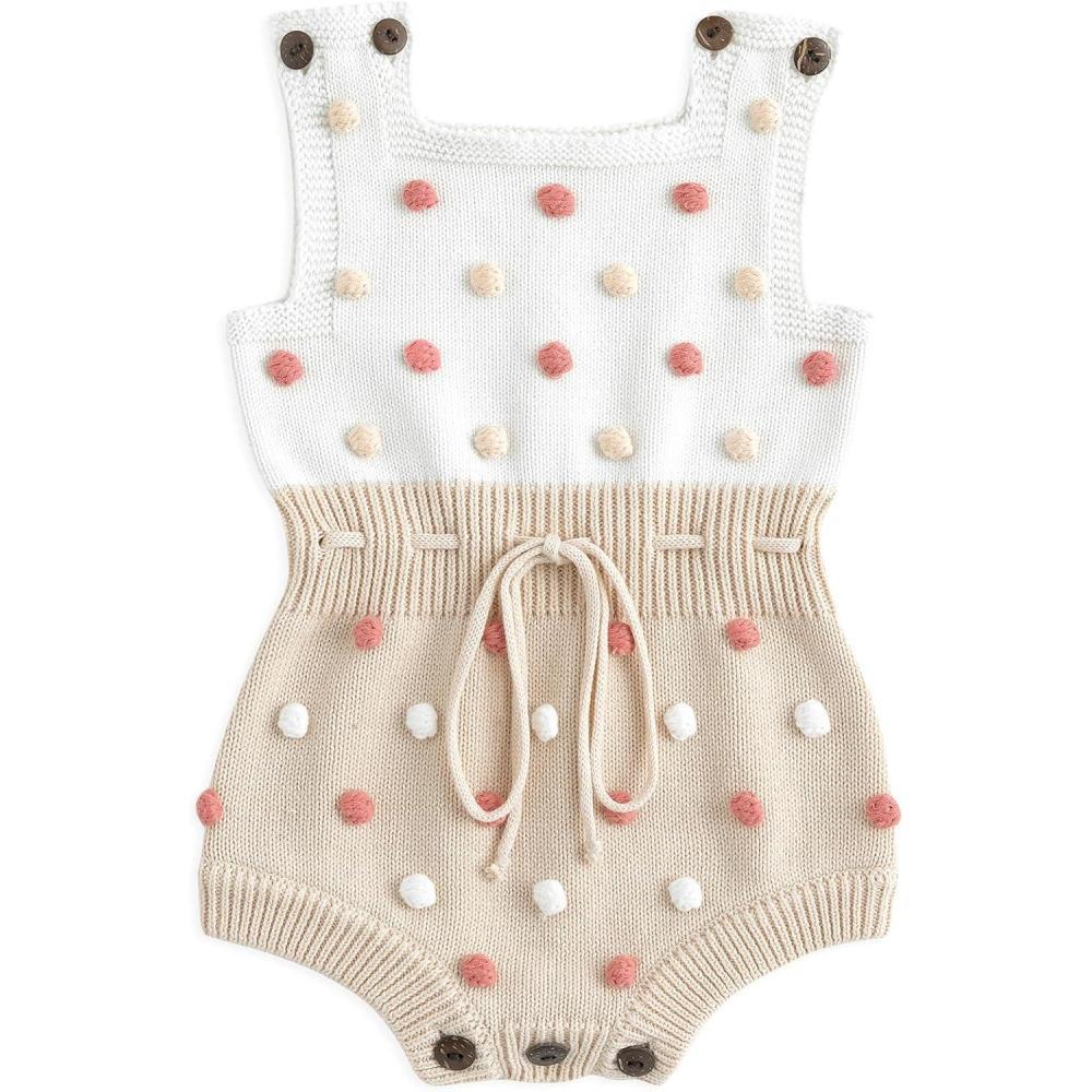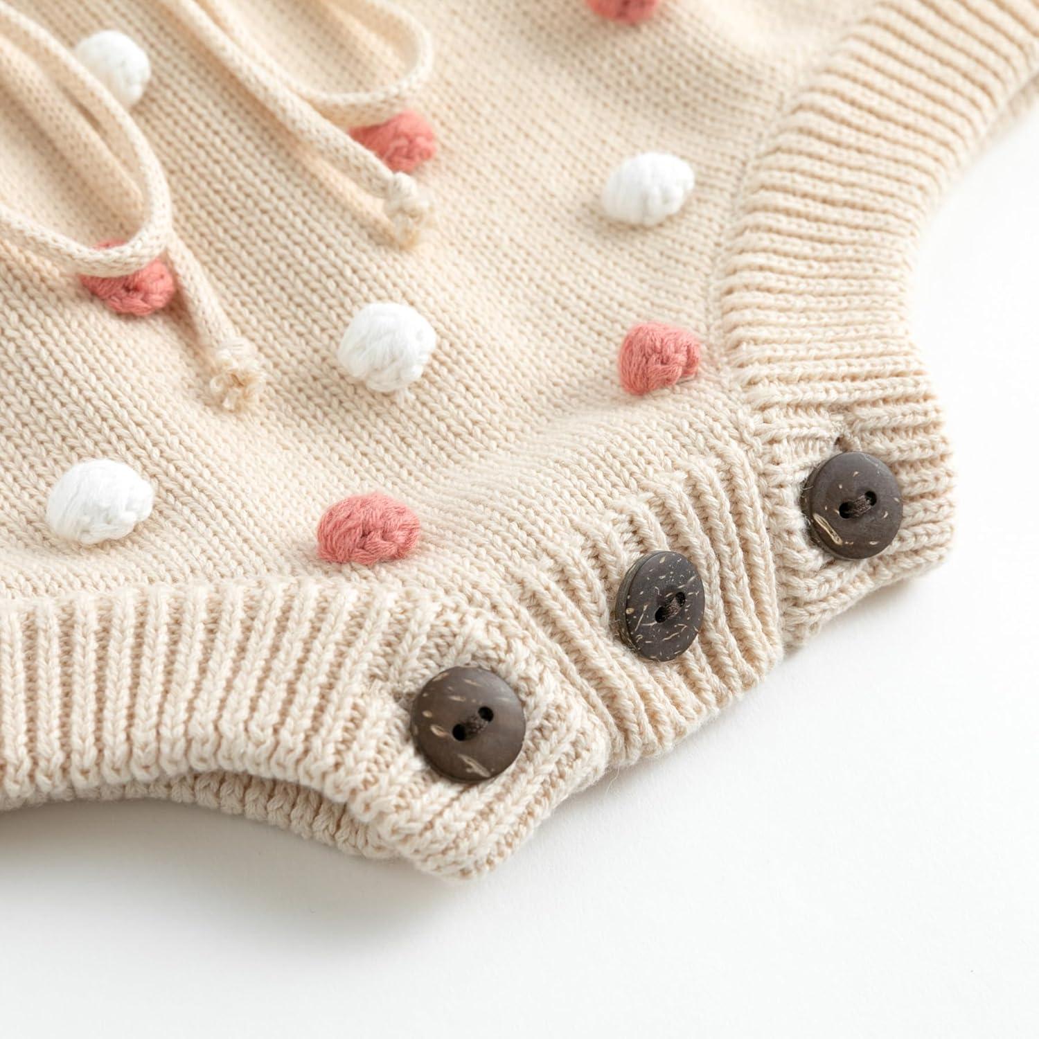 Simplee kids Baby Girl Knit Romper Fall Sleeveless Pompoms Rompers Newborn Little Girl Overall Jumpsuit Outfits(B-apricot)