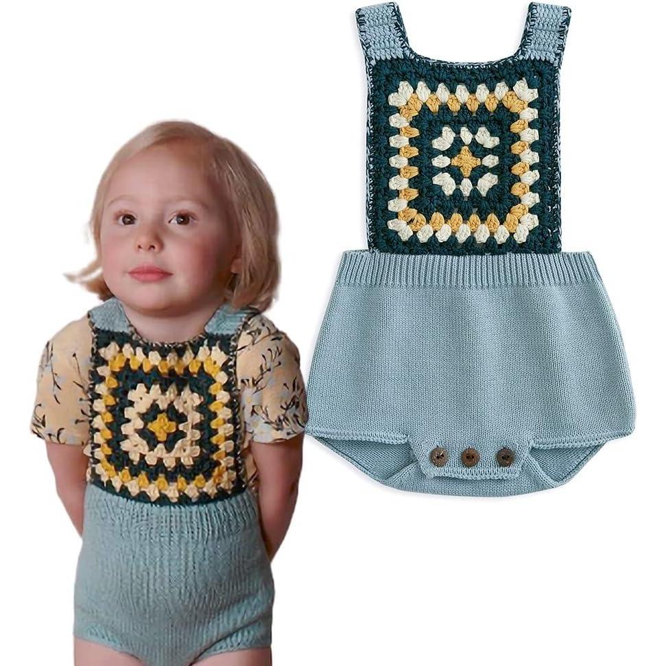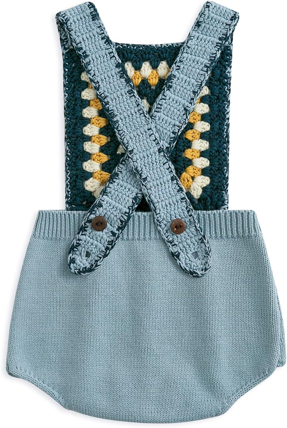 Simplee kids Baby Girl Knit Romper Fall Sleeveless Pompoms Rompers Newborn Little Girl Overall Jumpsuit Outfits(B-b-a Blue)