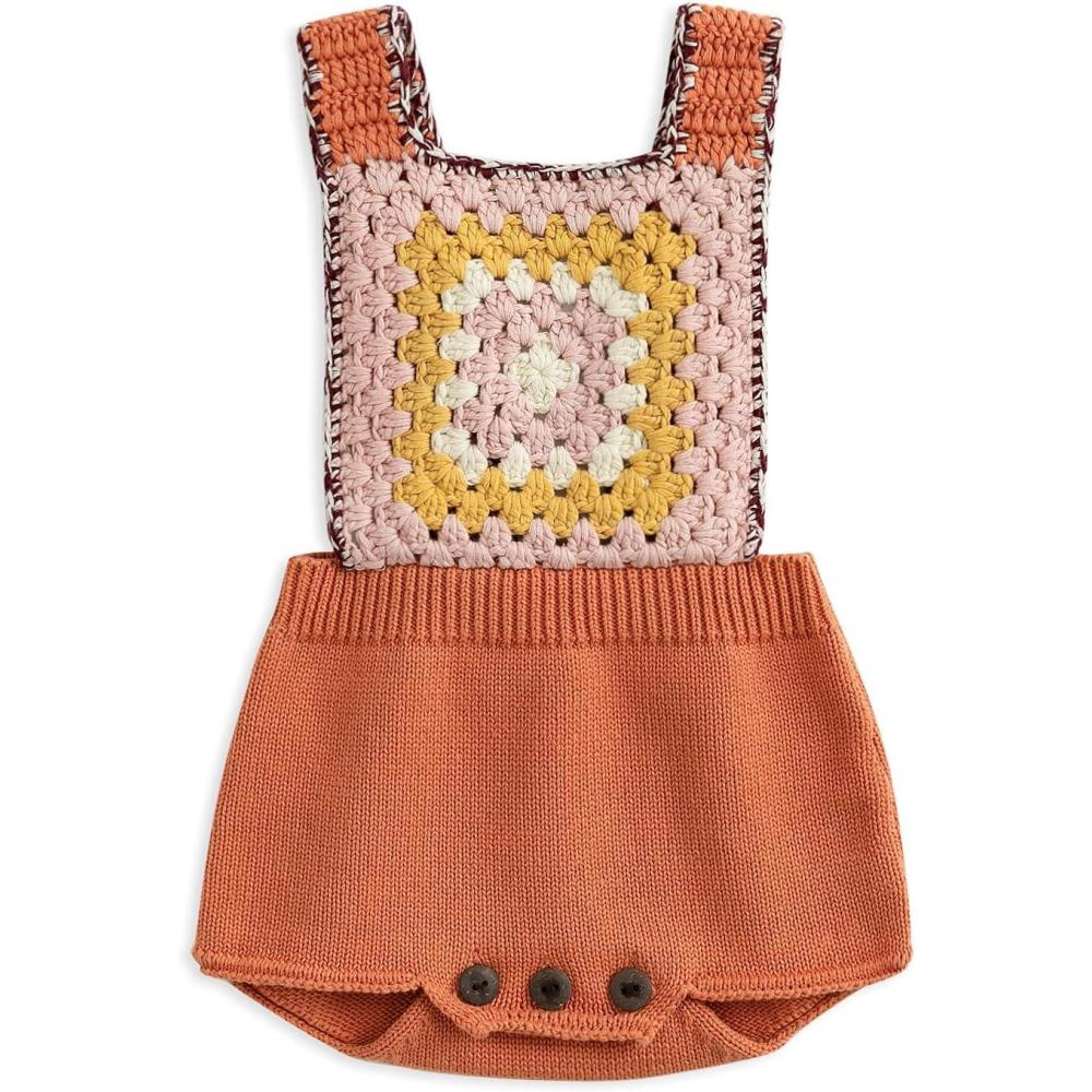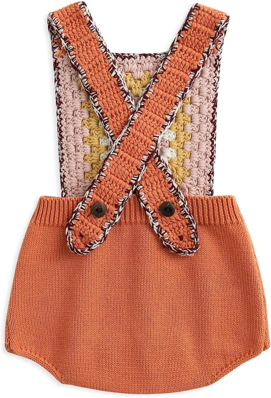 Simplee kids Baby Girl Knit Romper Fall Sleeveless Pompoms Rompers Newborn Little Girl Overall Jumpsuit Outfits(B-b-a Orange)