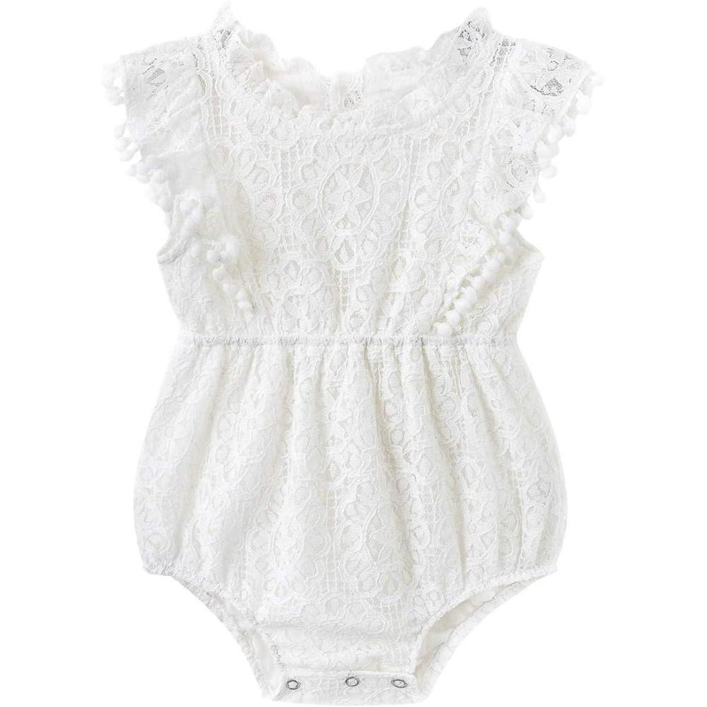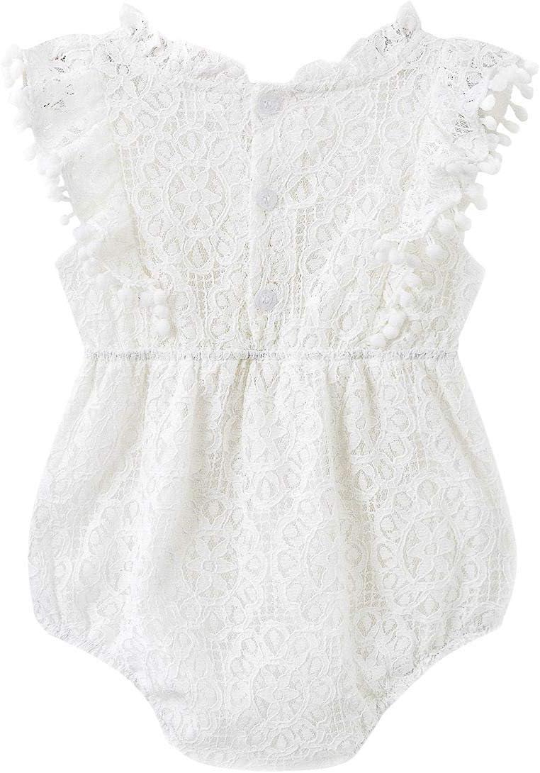 Simplee kids Baby Girl Knit Romper Fall Sleeveless Pompoms Rompers Newborn Little Girl Overall Jumpsuit Outfits(E- White)