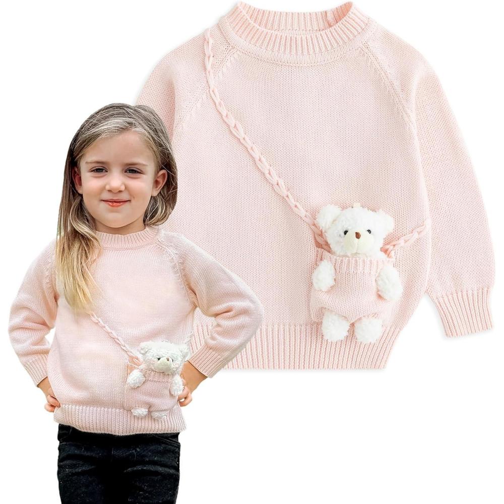 Simplee kids Baby Girl Knit Sweater with Bear in The Pocket Toddler Pullover Sweater Cute Fall Winter Clothes(B-pink Bear)