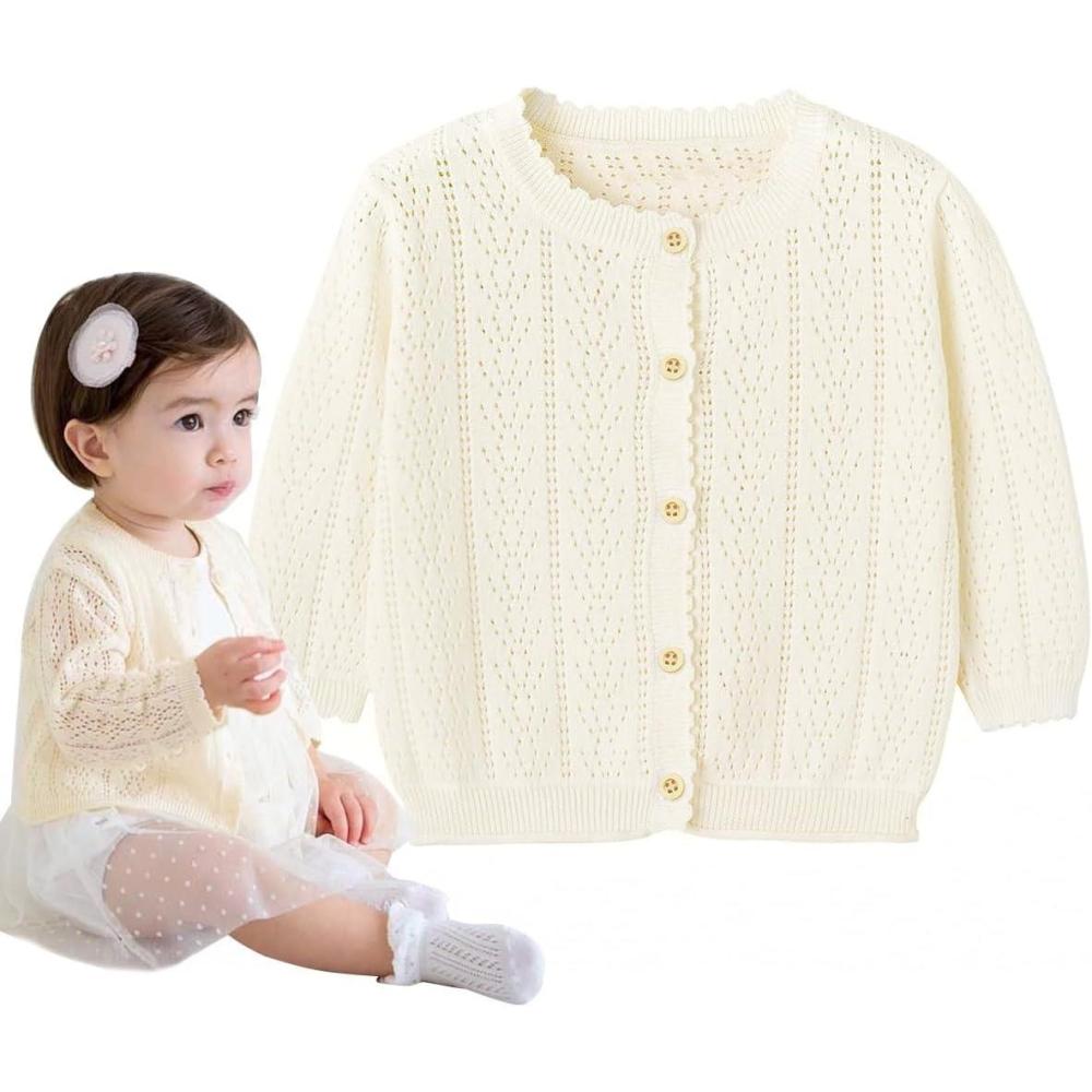 Simplee kids Baby Girl Thin Sweater Solid White Pink Cardigans for Toddler 0-3Years(D – Beige)