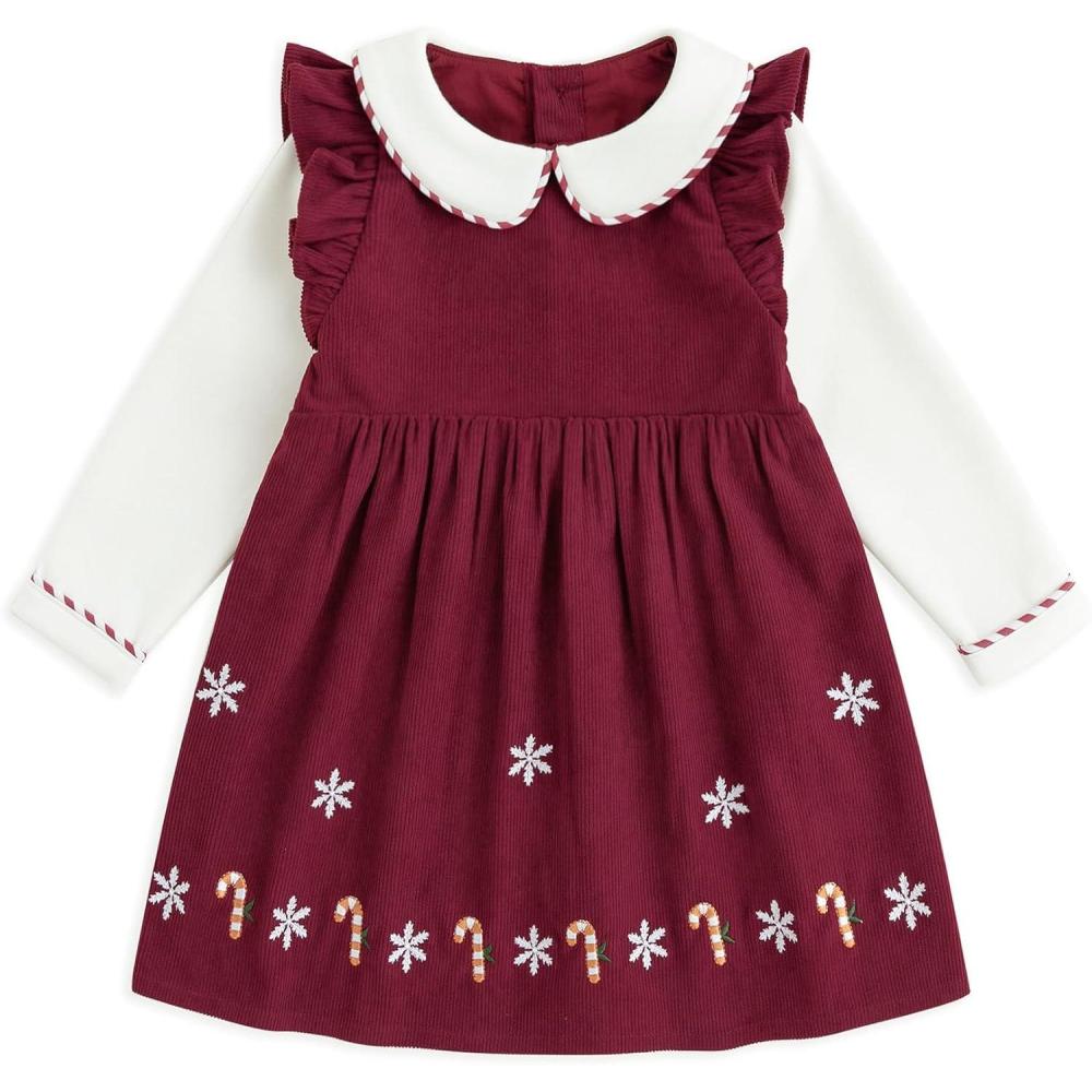 Simplee kids Baby Girls Peter Pan Collar Dress Long Sleeve Dress for Winter Autumn 12M-6T(Red)