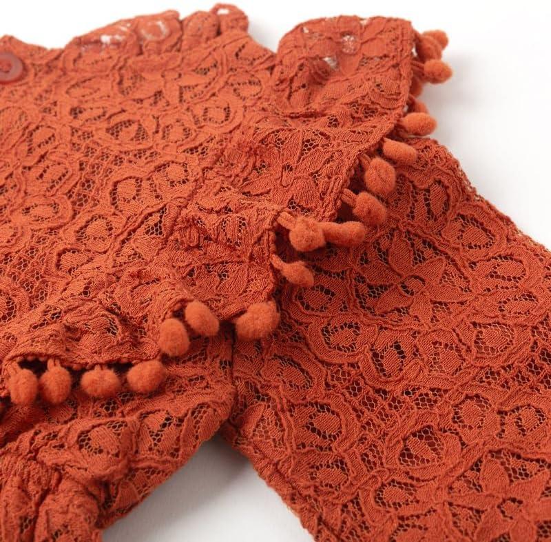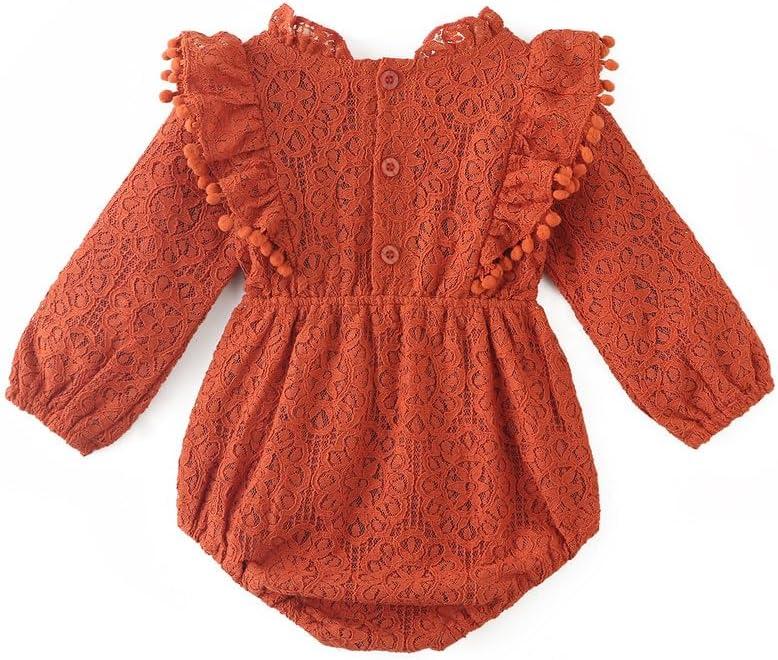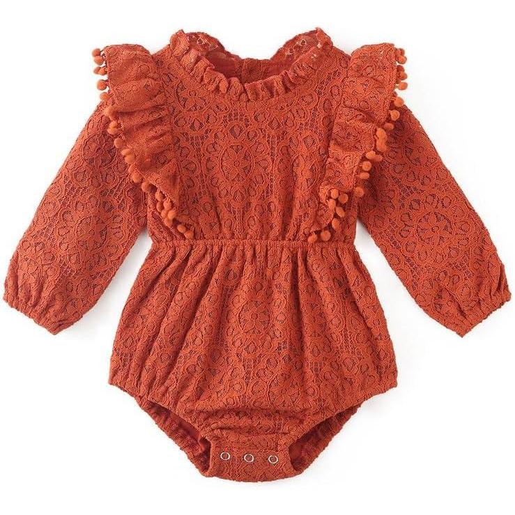 Simplee kids Baby Girls Rompers Long Sleeve Pompoms Infant Toddler Jumpsuit for Spring Fall Winter(E-z-brick-red)