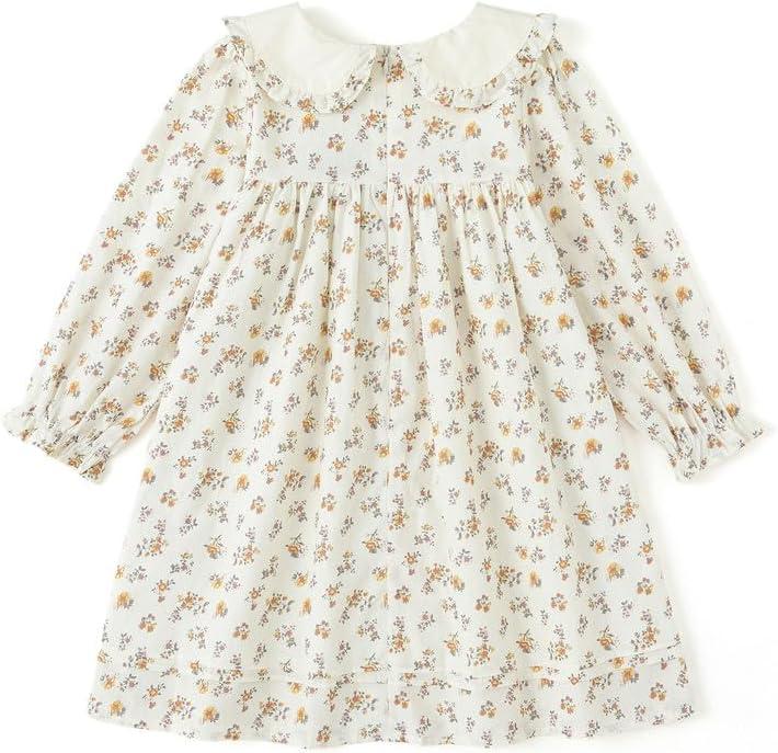 Simplee kids Baby Girls Smocked Dress Handmade Spring Fall Casual Dresses Floral Print Sundress Princess Dress for Toddlers(A-white-floral)