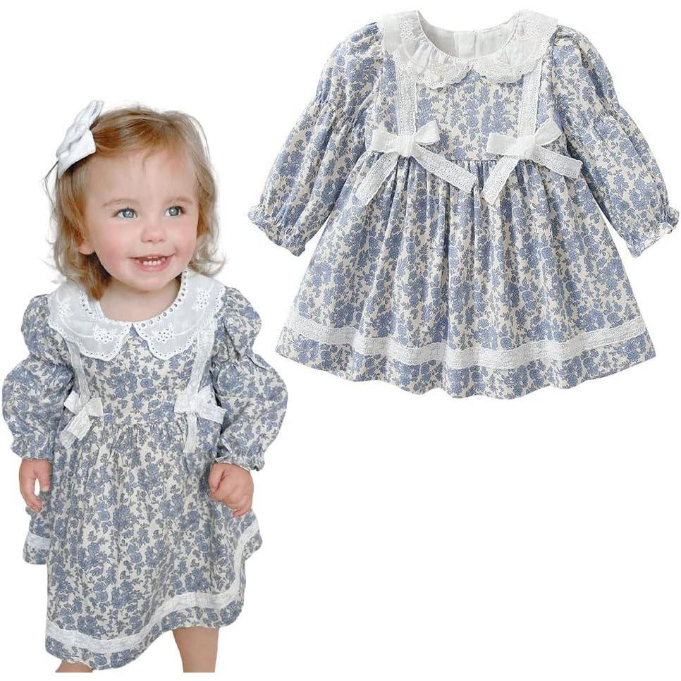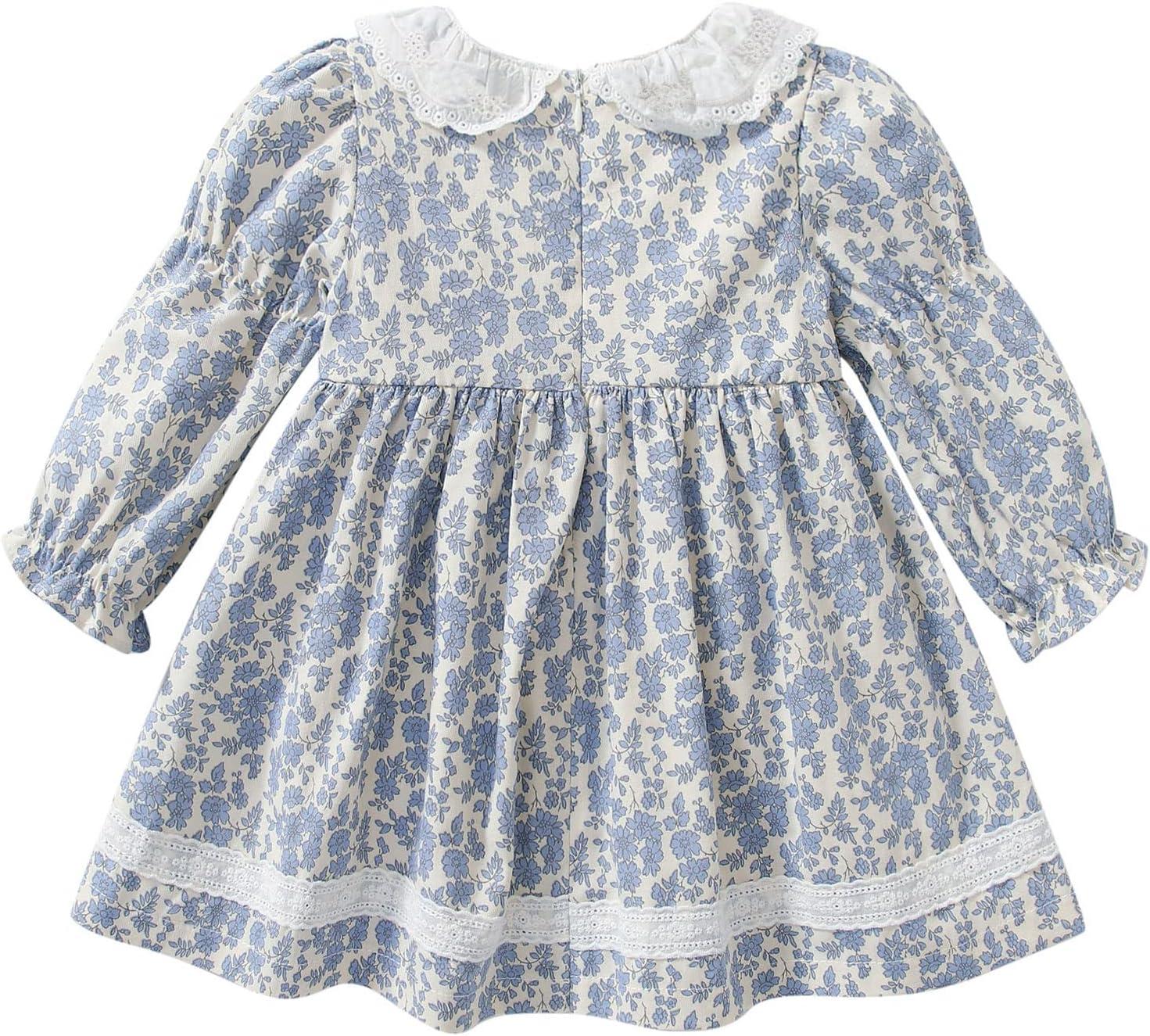 Simplee kids Baby Girls Smocked Dress Handmade Spring Fall Casual Dresses Floral Print Sundress Princess Dress for Toddlers(B-light Blue)