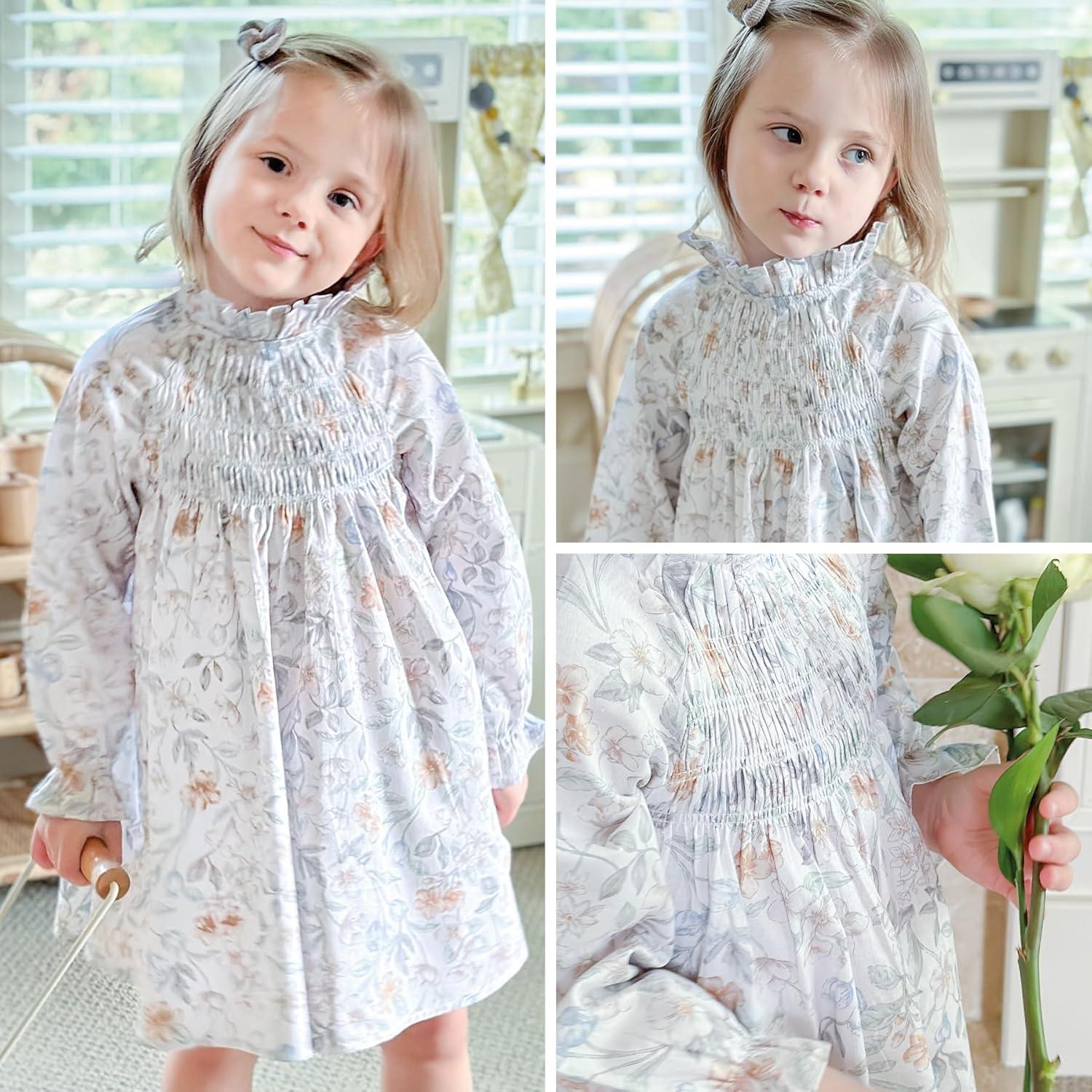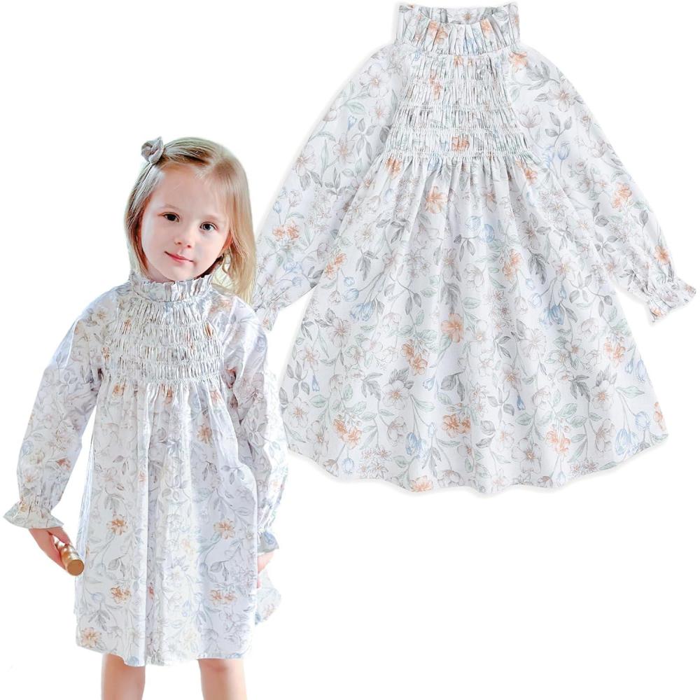 Simplee kids Baby Girls Smocked Dress Handmade Spring Fall Casual Dresses Floral Print Sundress Princess Dress for Toddlers(Cc-floral)