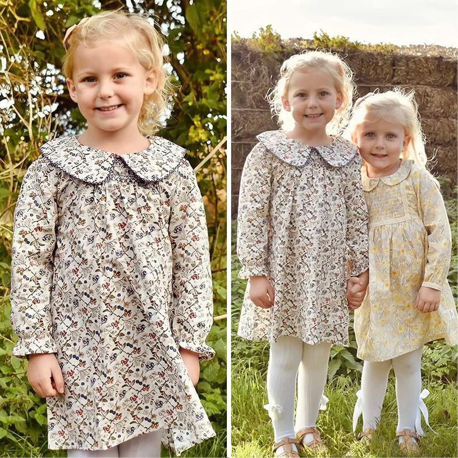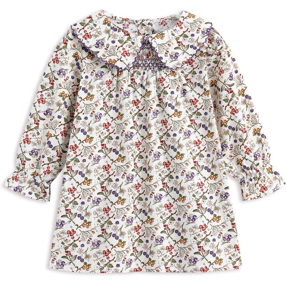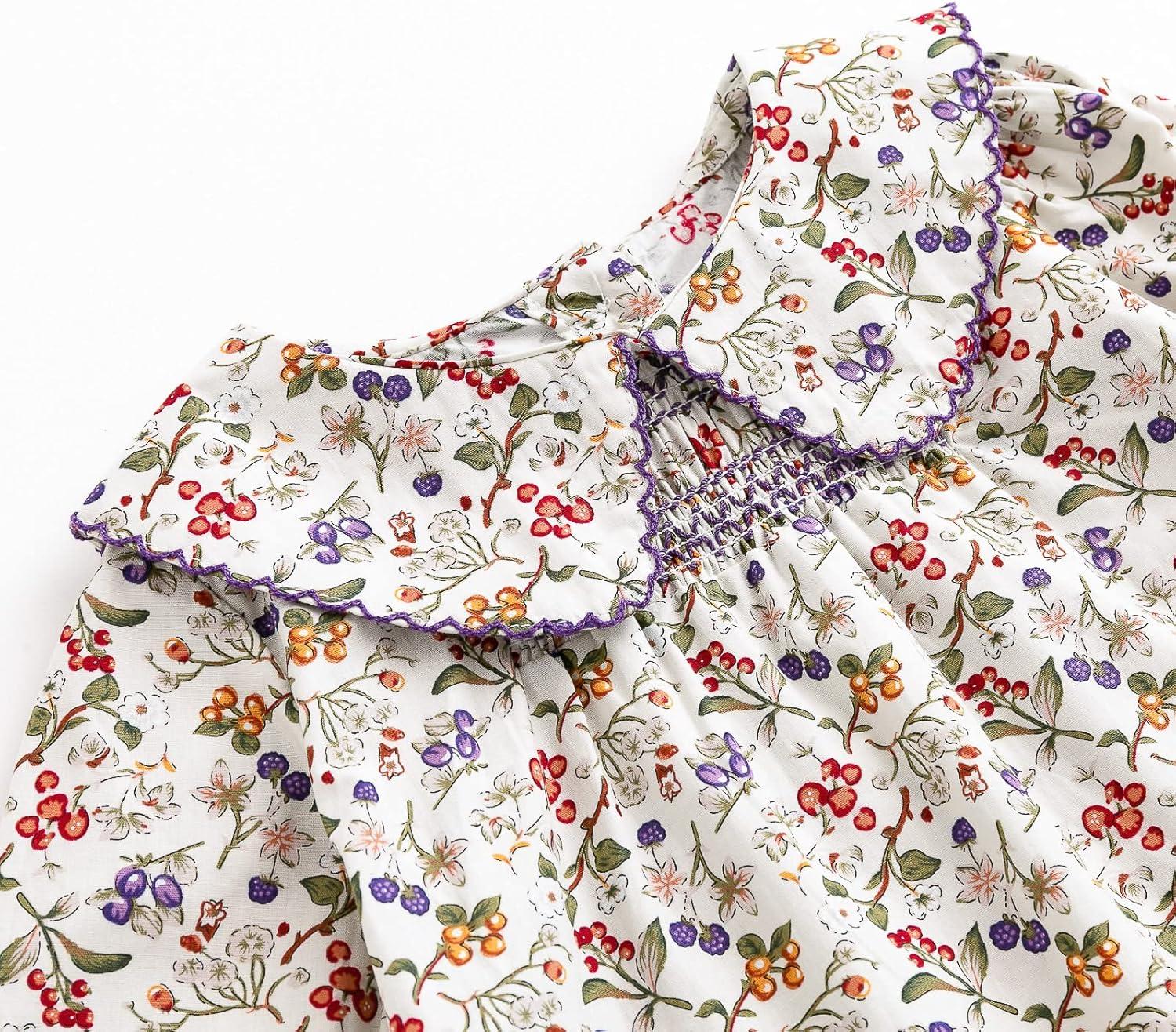 Simplee kids Baby Girls Smocked Dress Handmade Spring Fall Casual Dresses Floral Print Sundress Princess Dress for Toddlers(E-purple Floral)