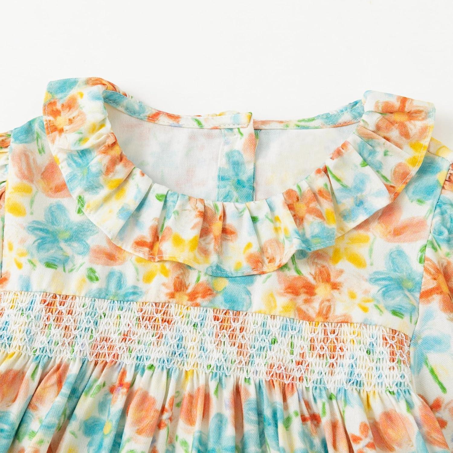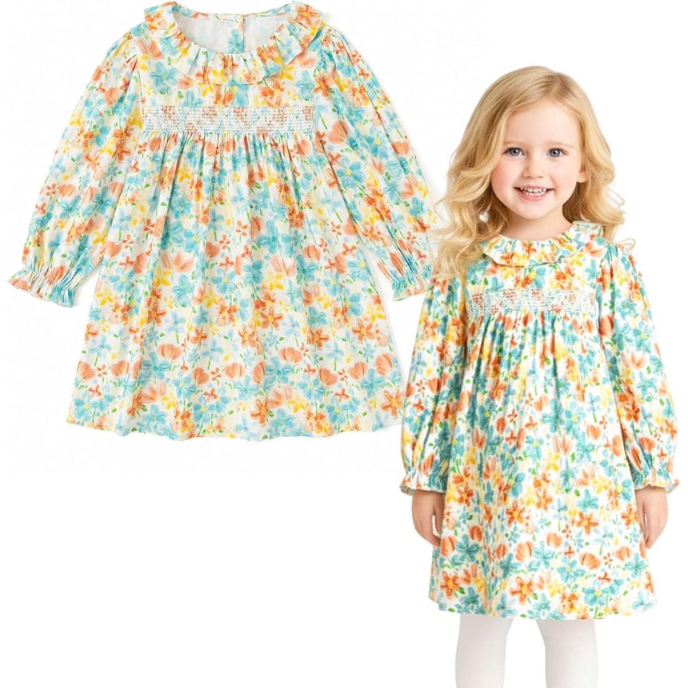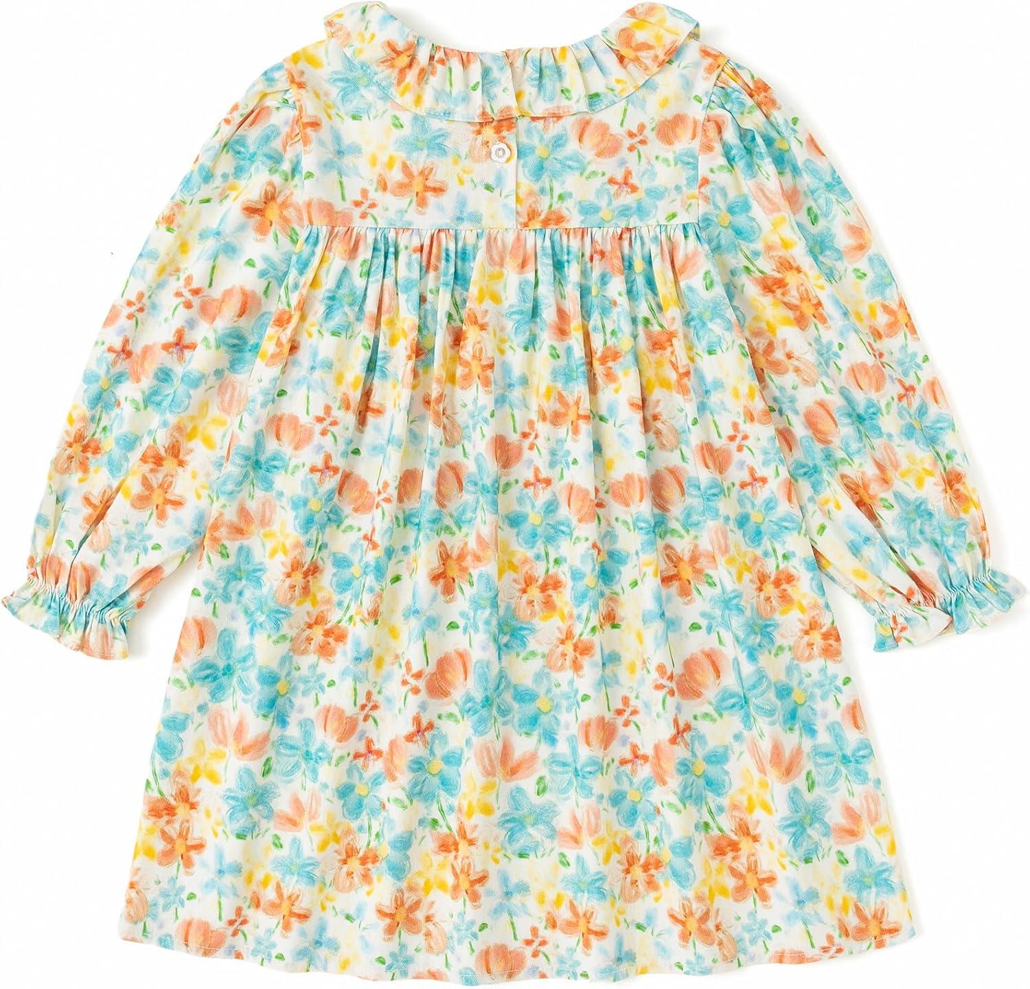 Simplee kids Baby Girls Smocked Dress Handmade Spring Fall Casual Dresses Floral Print Sundress Princess Dress for Toddlers(F-green Flower)