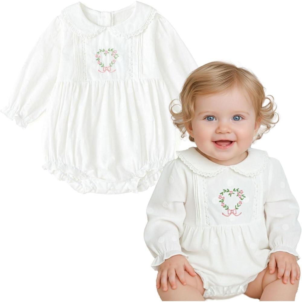 Simplee kids Baby Infant Girls Cotton Long Sleeve Summer Ruffle Romper 3-24 Months(A-white-heart)