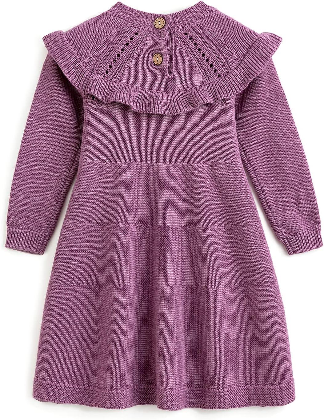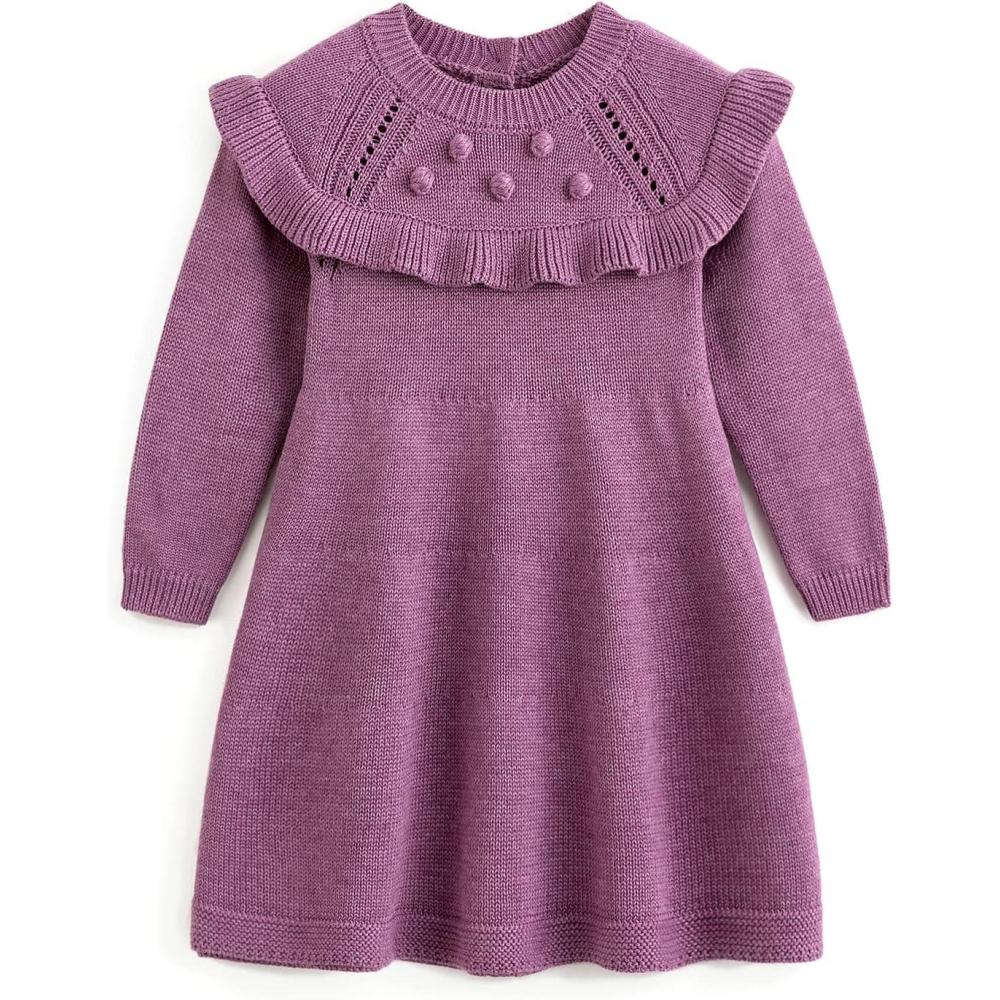 Simplee kids Baby Little Girls’ Long Sleeve Sweater Dress Knit Warm Sweater Outfit Dress for Toddler Girls 6M-5T(Z-c Purple)