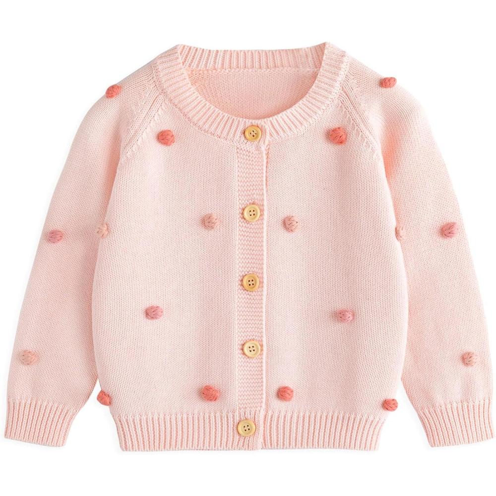 Simplee kids Baby Sweater Cardigan Jacquard Cable-Knit Spring Coat Long Sleeve Cardigan for Baby Girl(Zz-pink)