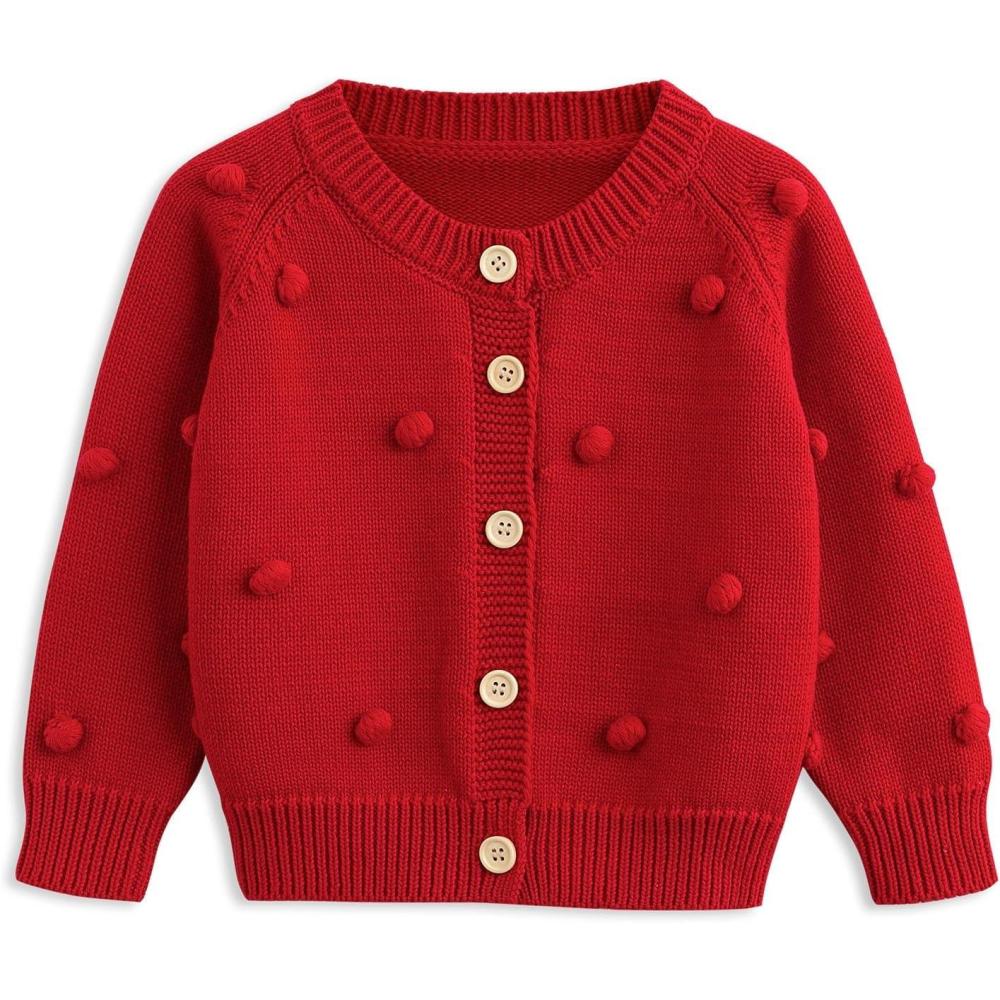 Simplee kids Baby Sweater Cardigan Jacquard Cable-Knit Spring Coat Long Sleeve Cardigan for Baby Girl(Zz-red)