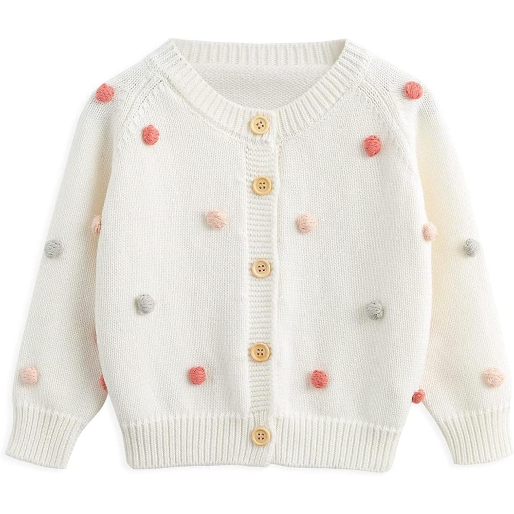 Simplee kids Baby Sweater Cardigan Jacquard Cable-Knit Spring Coat Long Sleeve Cardigan for Baby Girl(Zz-white)