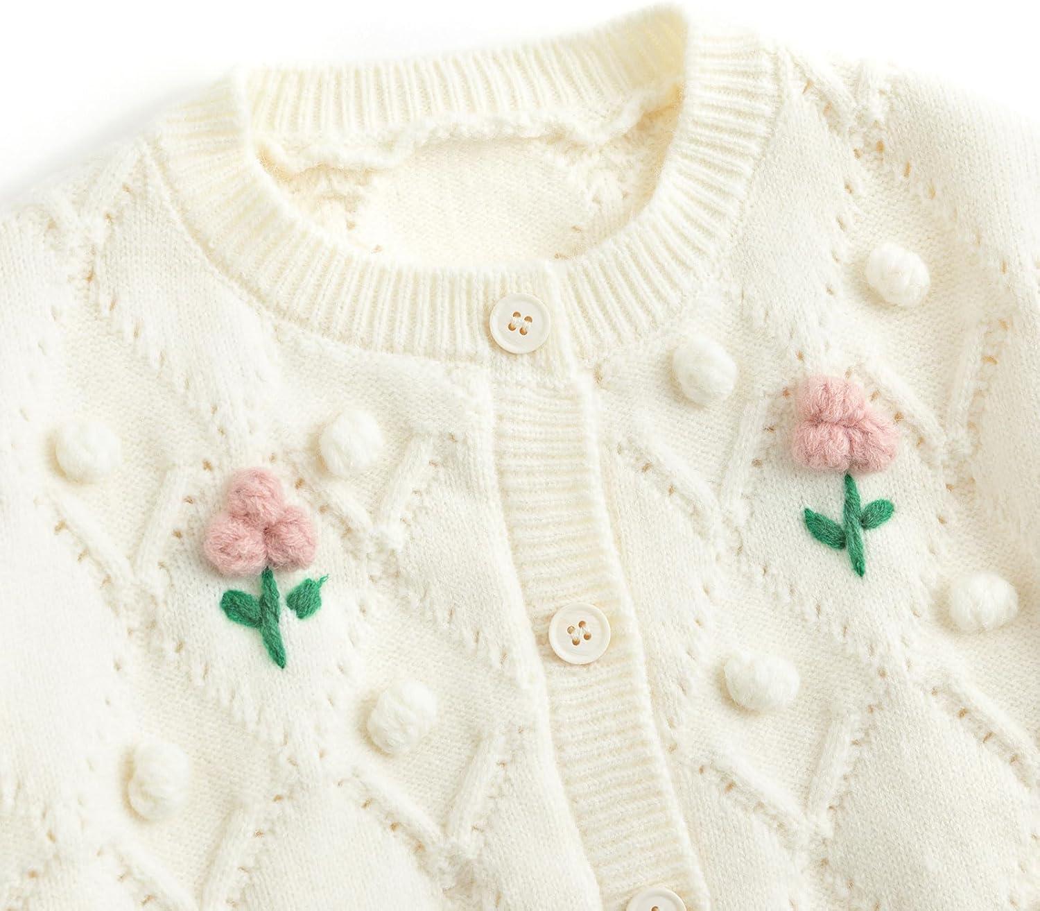 Simplee kids Baby Sweater Toddler Girls Cardigan Sweater Embroidered Strawberry Knit Sweater(C-flower)