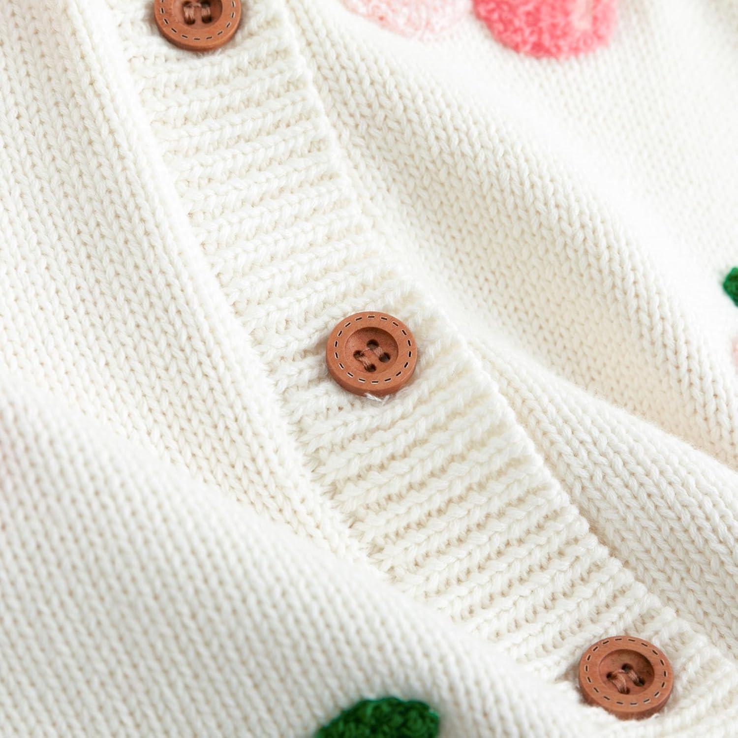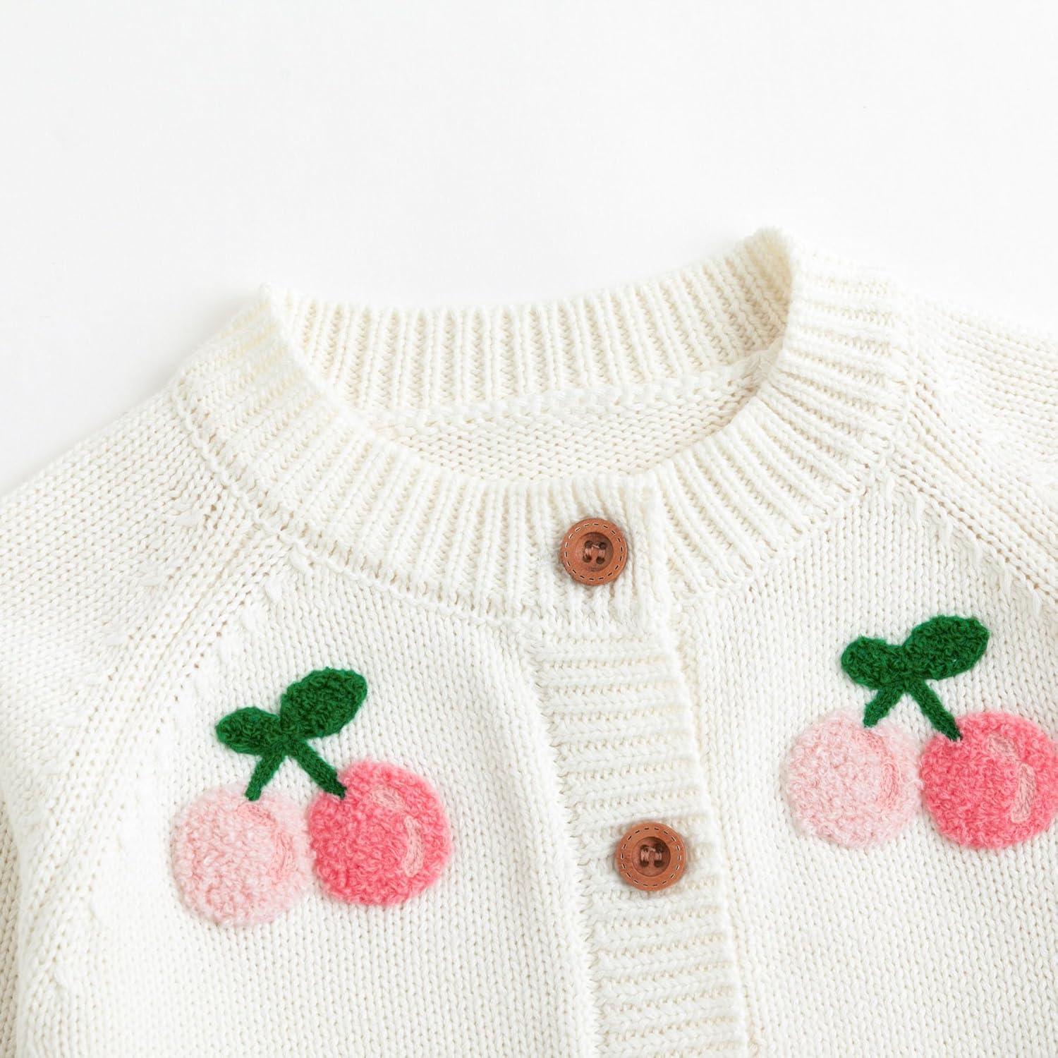 Simplee kids Baby Sweater Toddler Girls Cardigan Sweater Embroidered Strawberry Knit Sweater(E-beige)