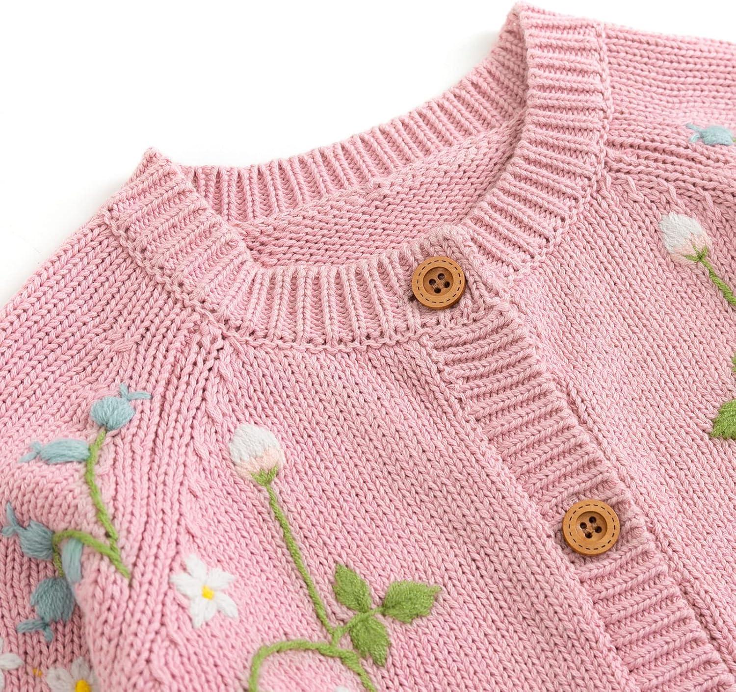 Simplee kids Baby Sweater Toddler Girls Cardigan Sweater Embroidered Strawberry Knit Sweater(K-apricot)