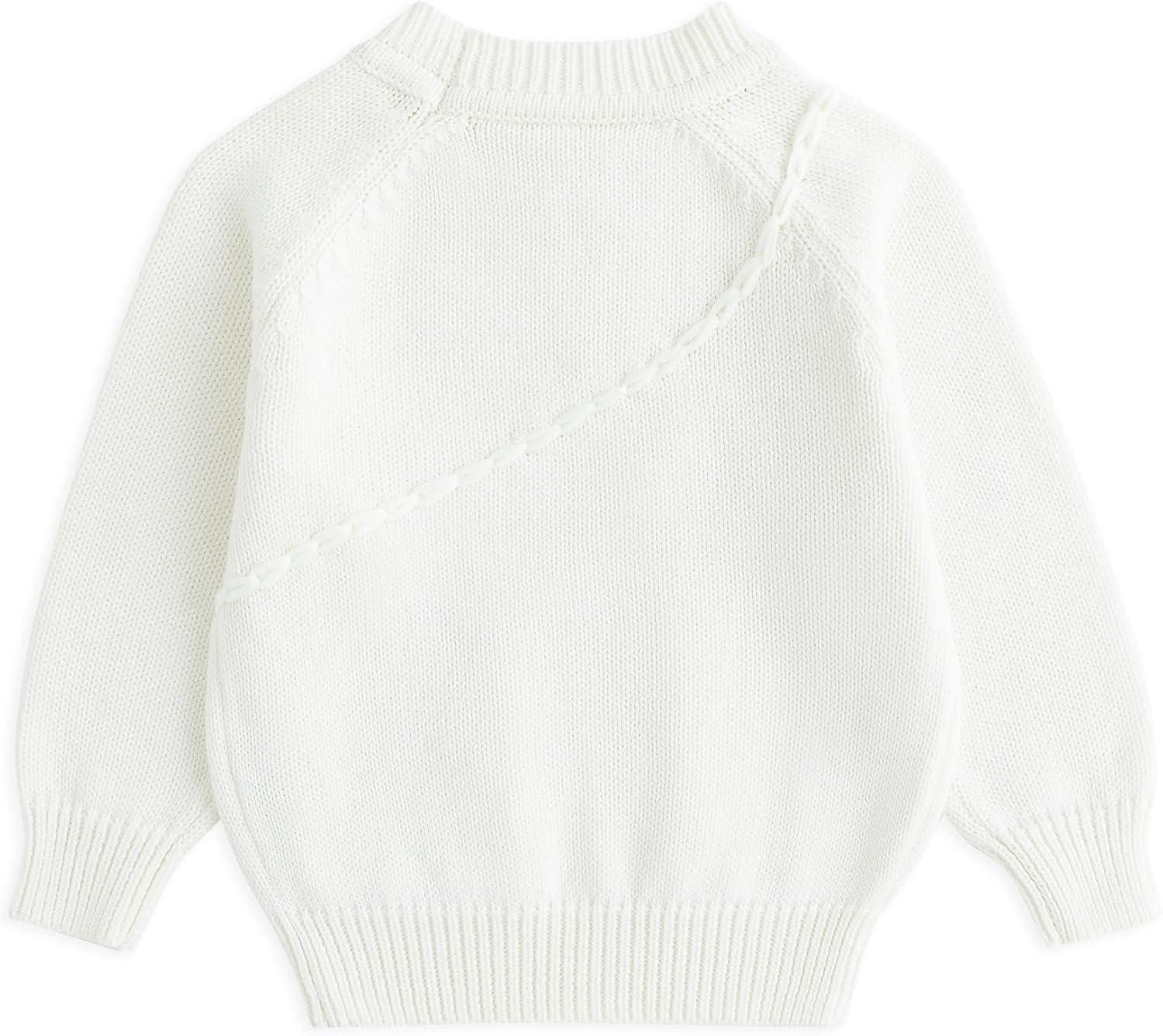 Simplee kids Baby Sweater with Bear in The Pocket Hand Crocheted Pullover Sweater Knit Toddler Clothes for Winter and Fall(B-white Bear)