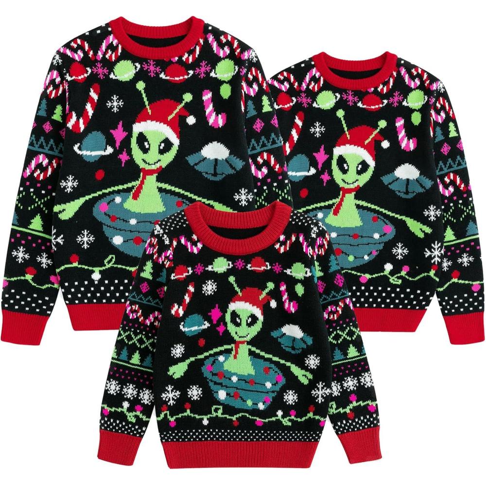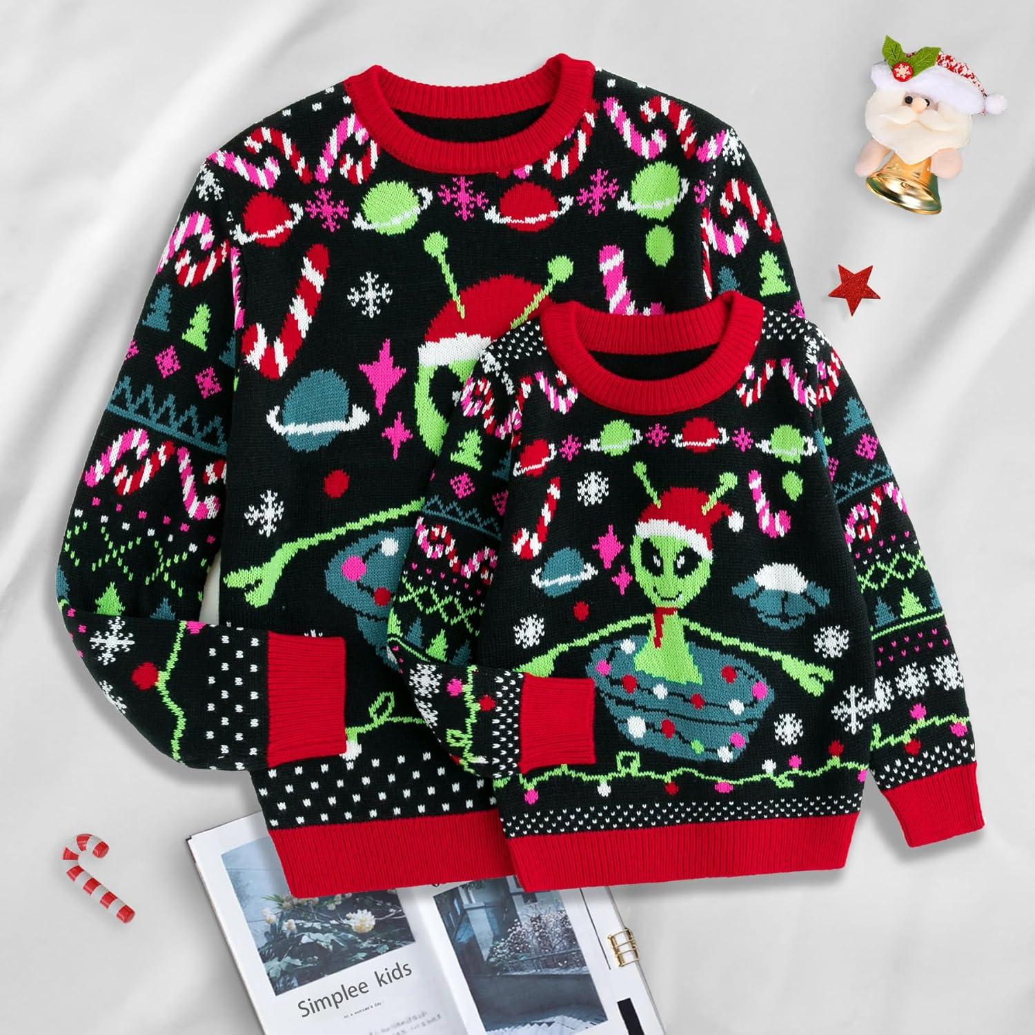 Get up to 60% off on Simplee kids Family Matching Christmas Sweaters Xmas Print Ugly Funny Jumper Holiday Pullover Tops(A-black-alient) styles during our winter sale event.