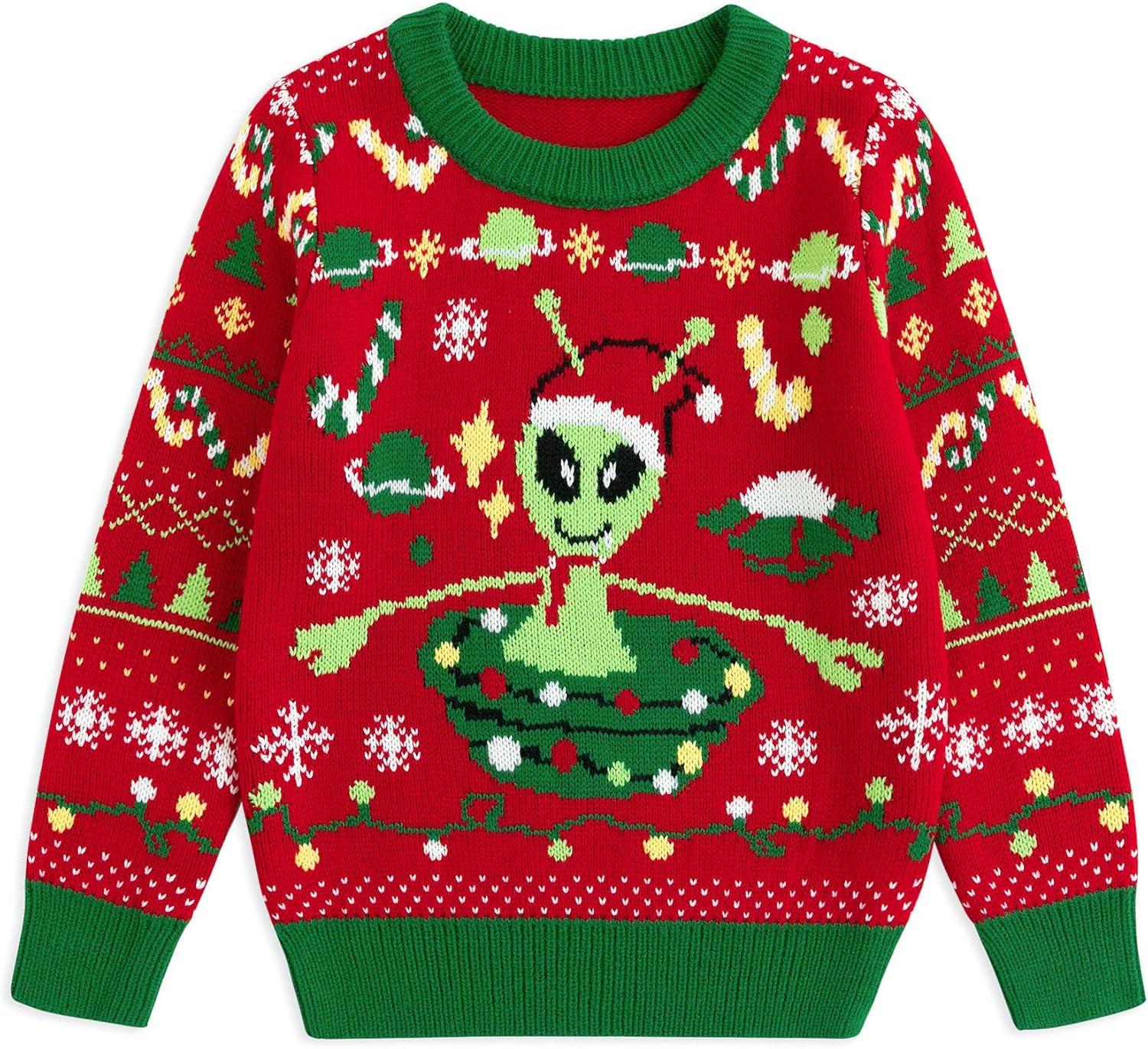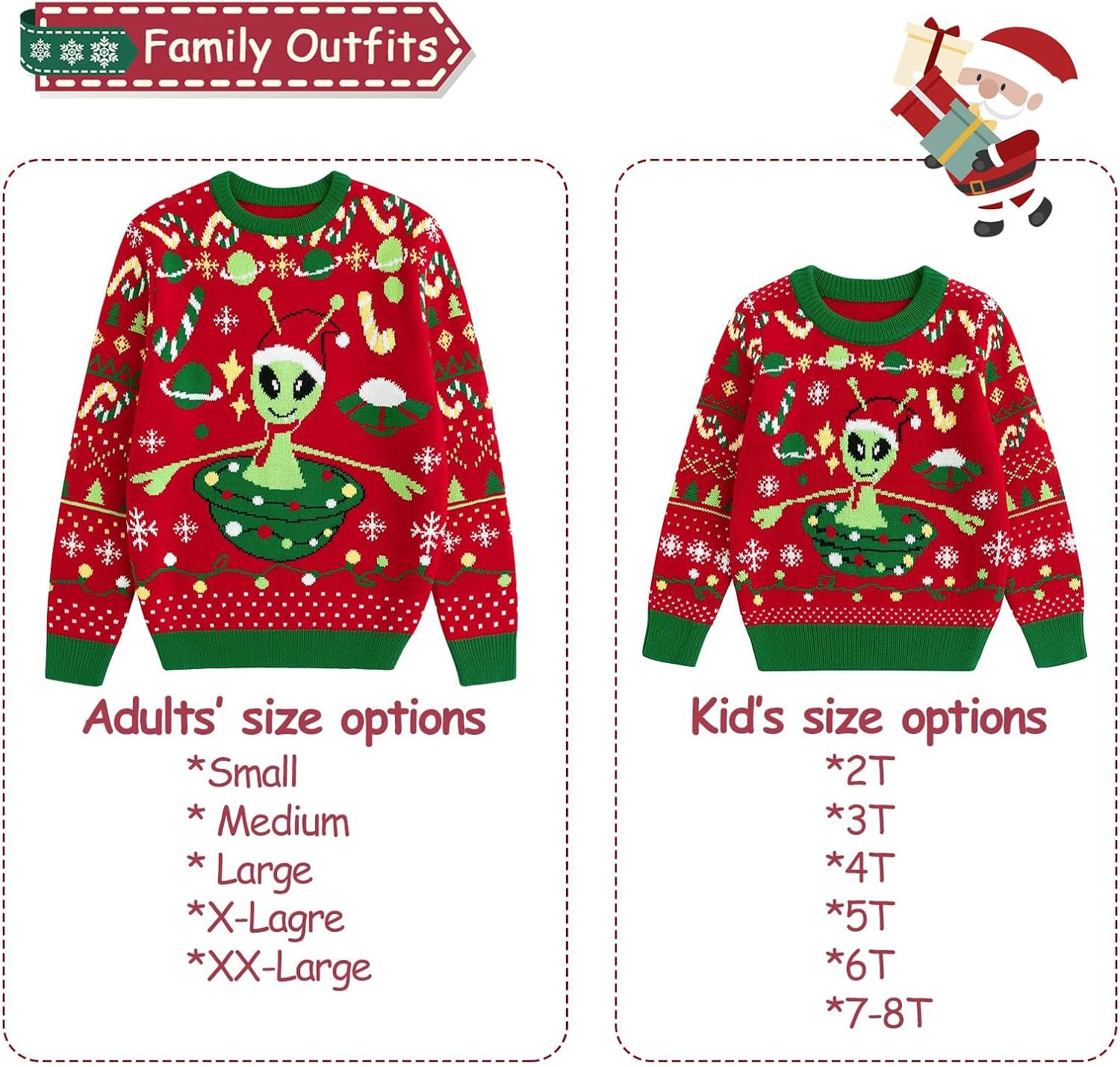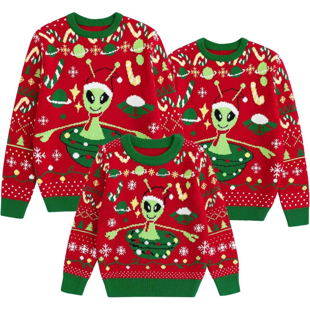 Simplee kids Family Matching Christmas Sweaters Xmas Print Ugly Funny Jumper Holiday Pullover Tops(A-red-alient)