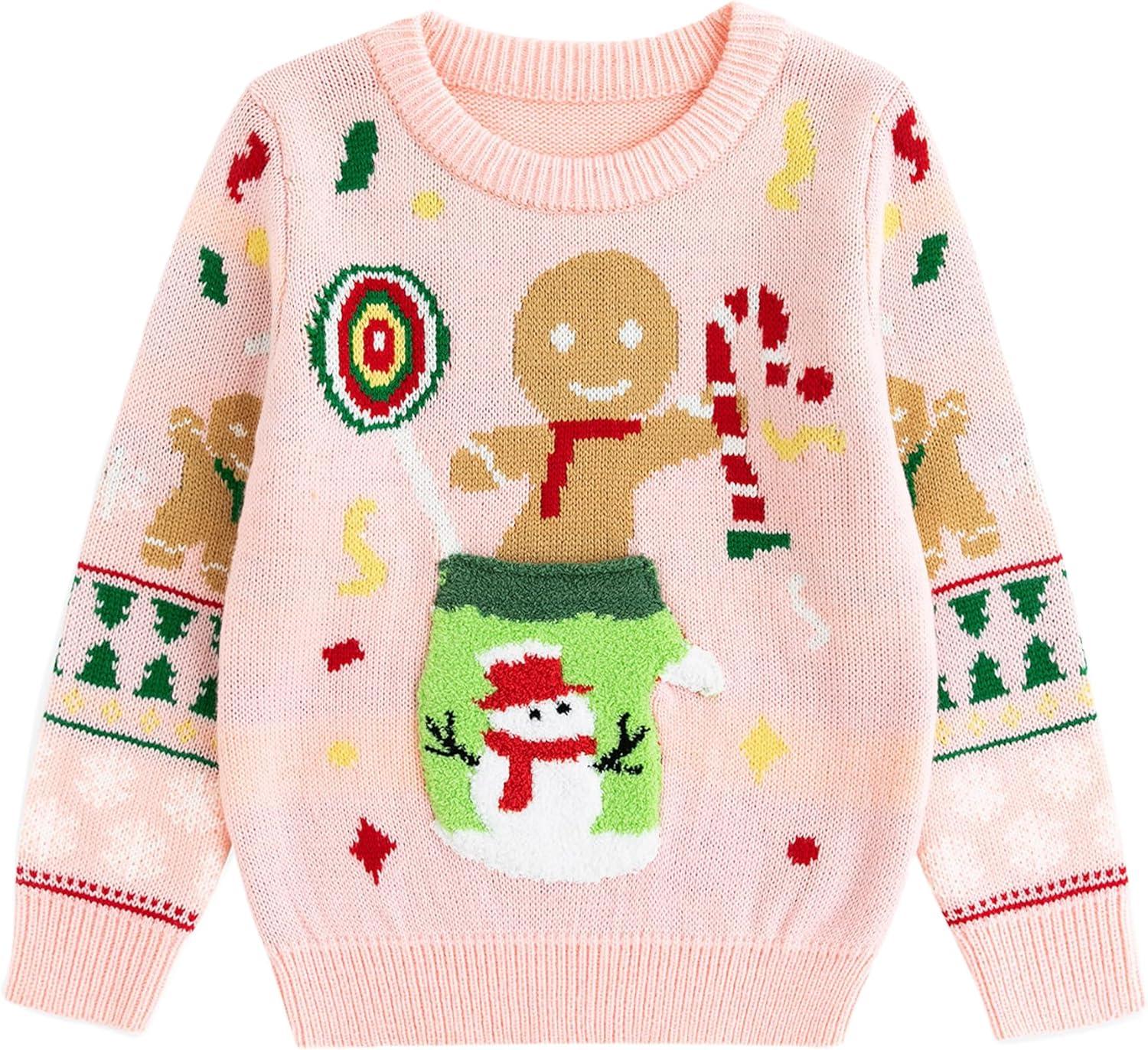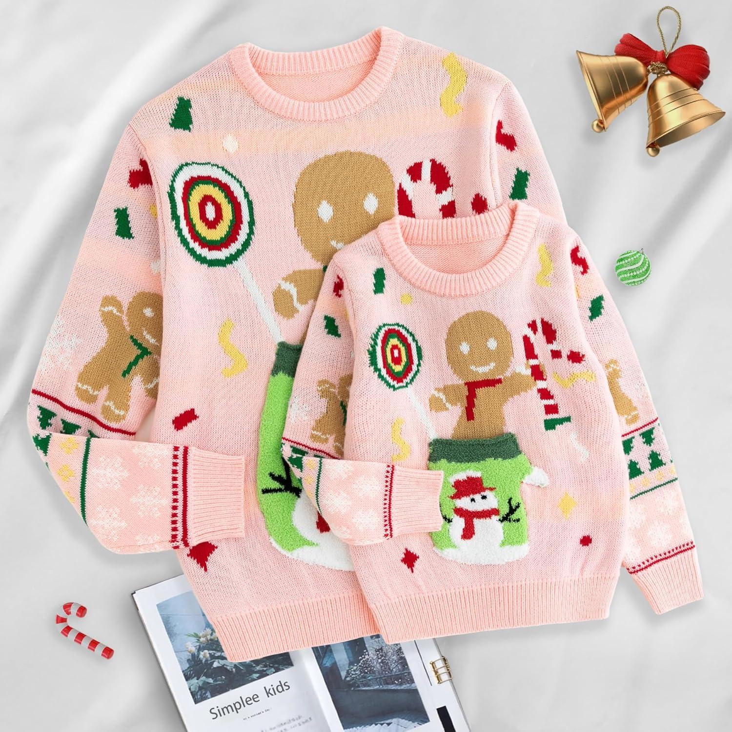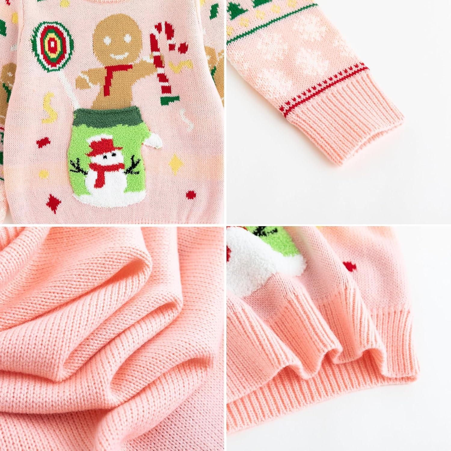 Simplee kids Family Matching Christmas Sweaters Xmas Print Ugly Funny Jumper Holiday Pullover Tops(Gloves-pink)