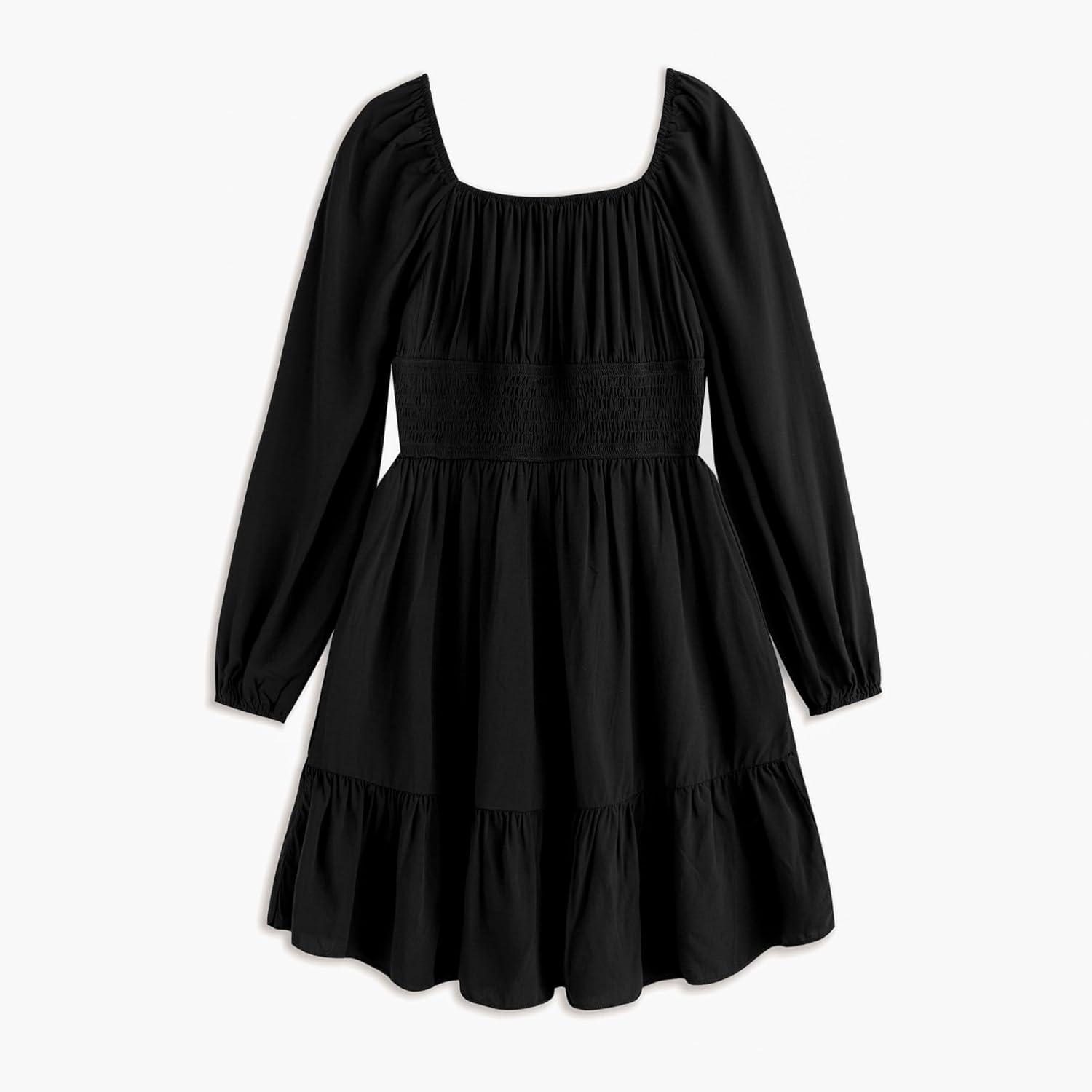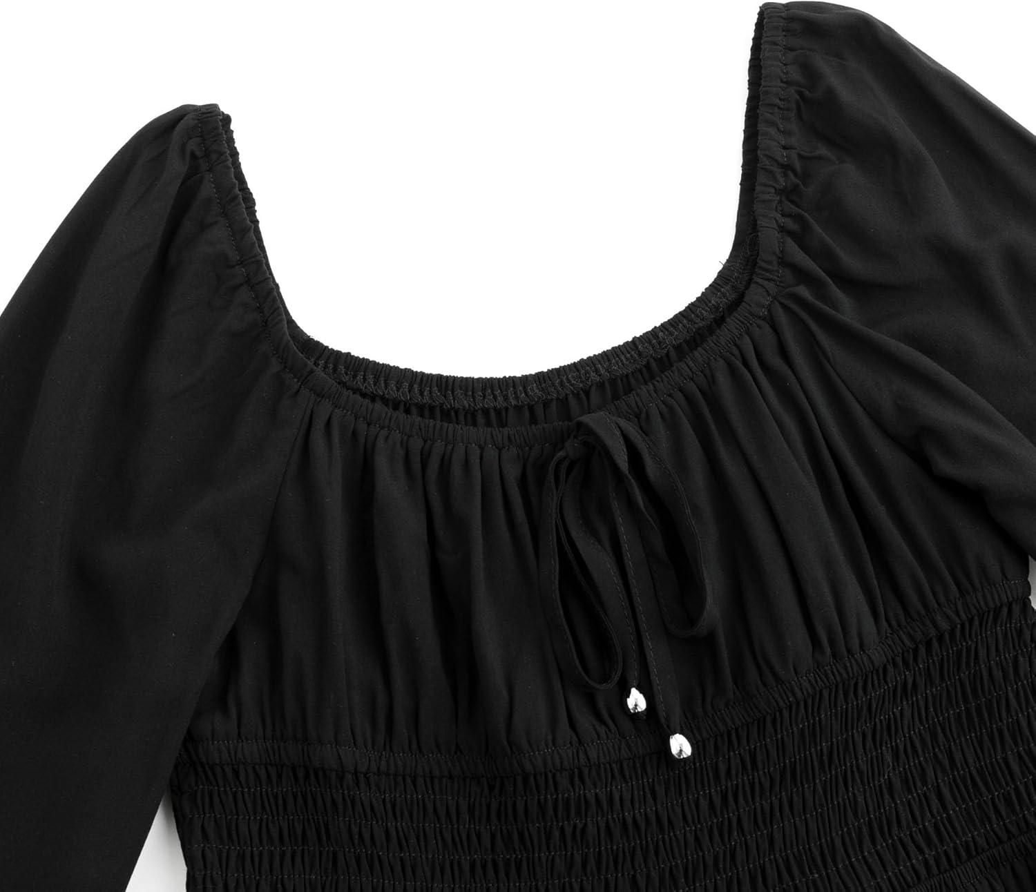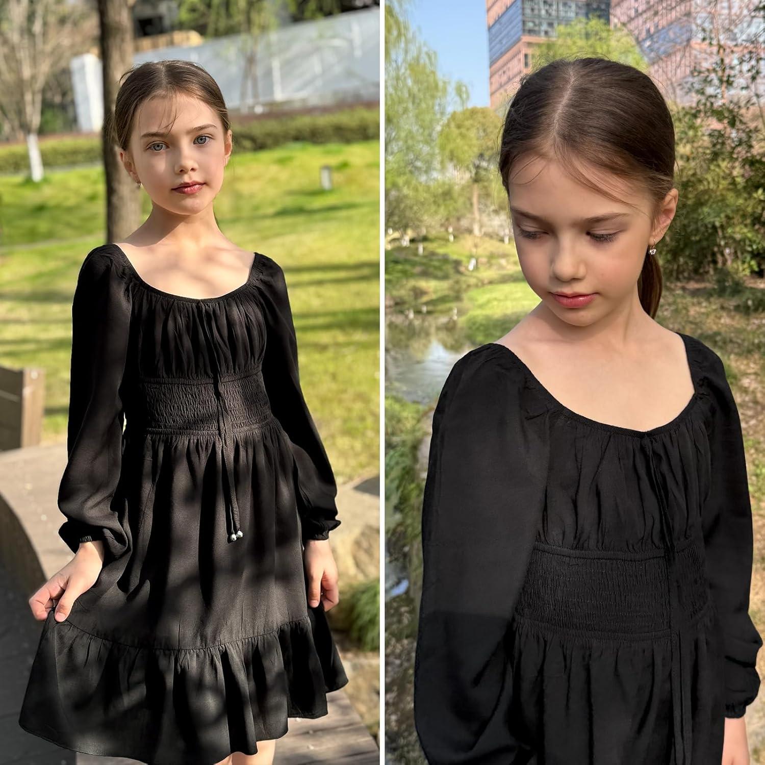 Simplee kids Girls Dresses Fall Long Sleeve Dress for Girl Tween Off Shoulder Smocked Dresses Size 4-15 Years(B-black)