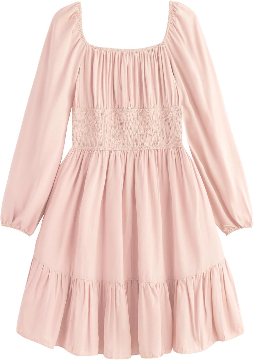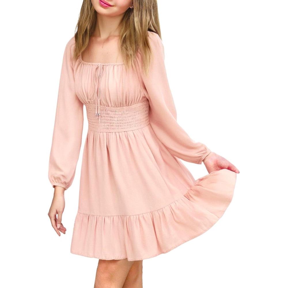 Simplee kids Girls Dresses Fall Long Sleeve Dress for Girl Tween Off Shoulder Smocked Dresses Size 4-15 Years(B-pink)