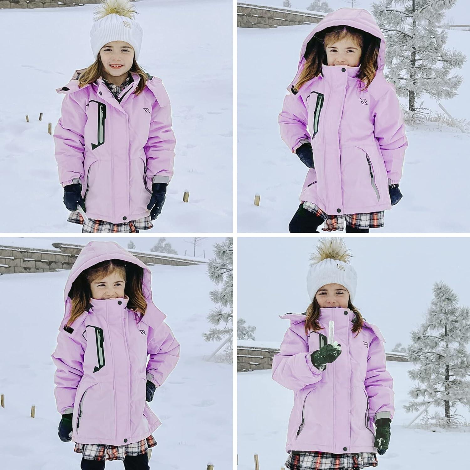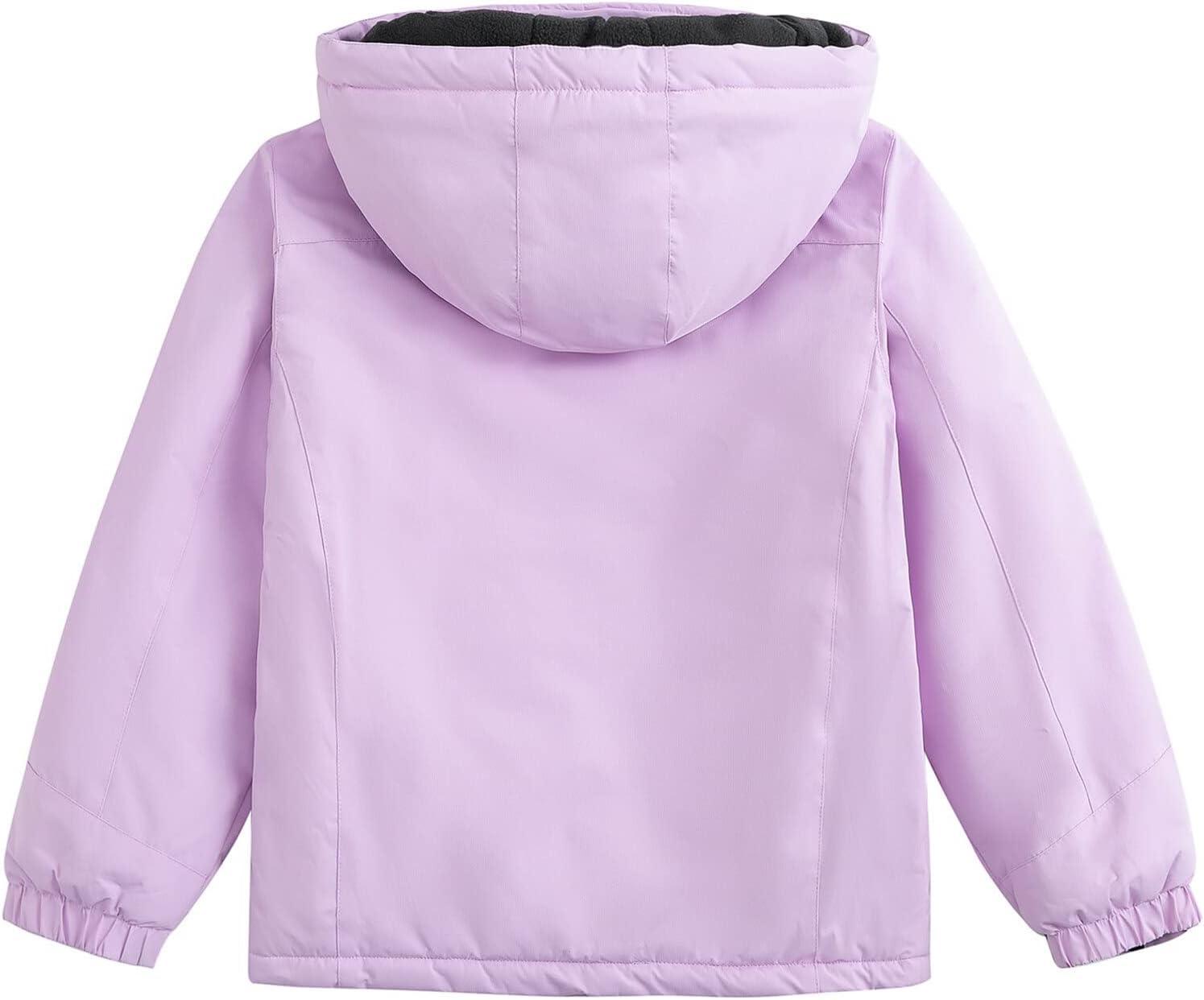 Simplee kids Girls Waterproof Snow Jacket Fleece Winter Windproof Ski Jackets for Toddler Girls Hooded Warm Coat(F-purple)