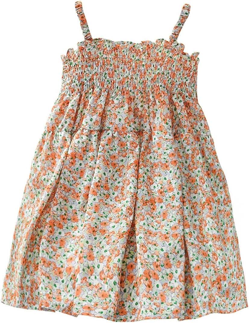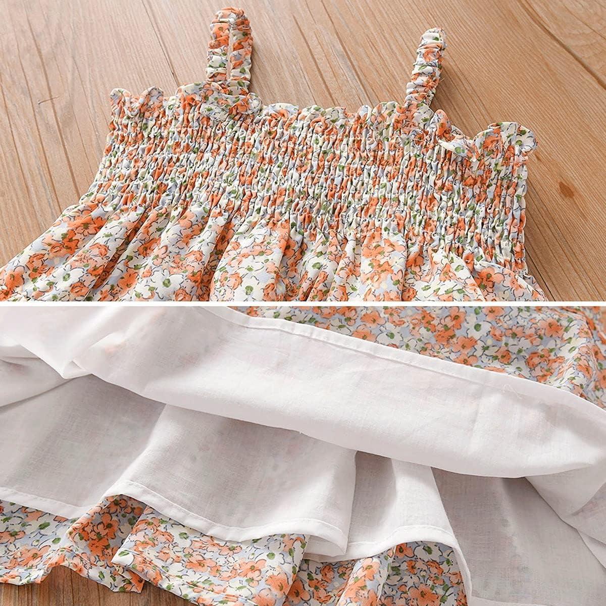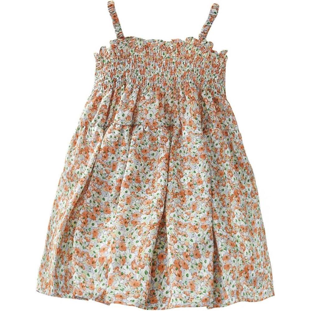 Simplee kids Spaghetti Strap Dress for Toddler Girl Summer Dress for Kids Floral Sleeveless Dress 2-9 Years(A-orange-floral)