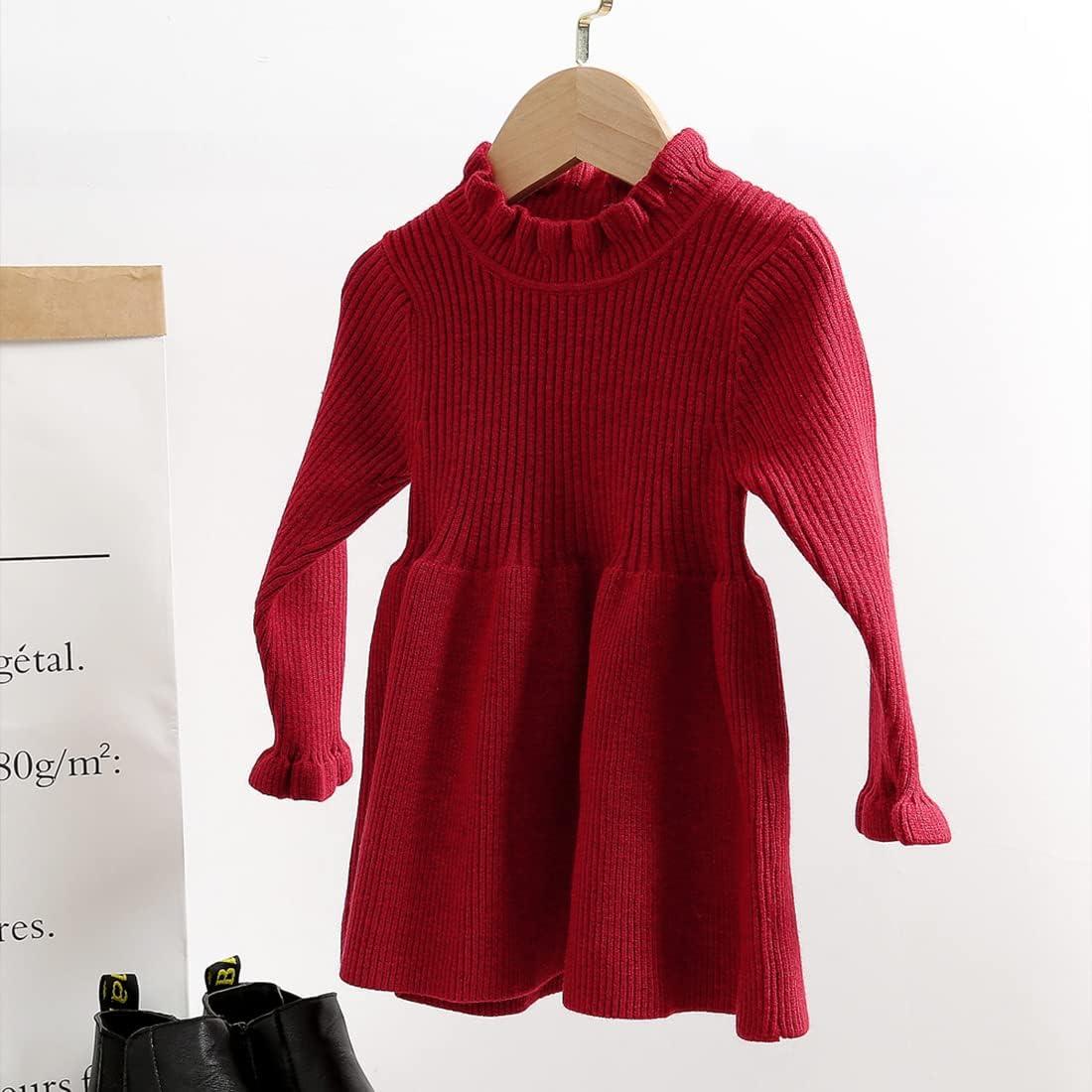 Simplee kids Toddler Dress Baby Girl Fall Dress Ribbed Knit Sweater Dress for 6M-5T(Red)