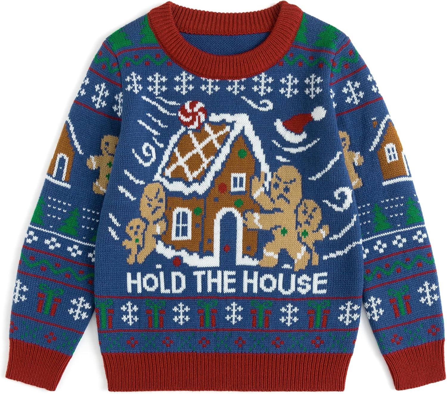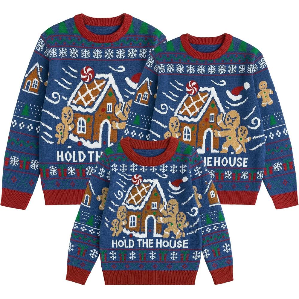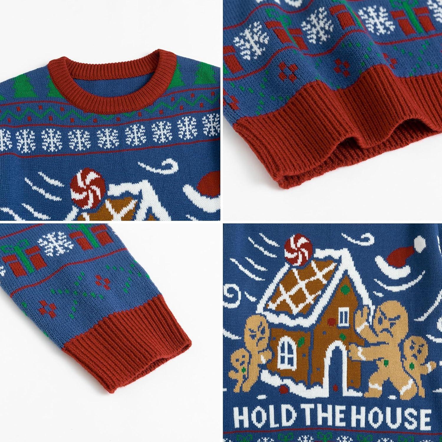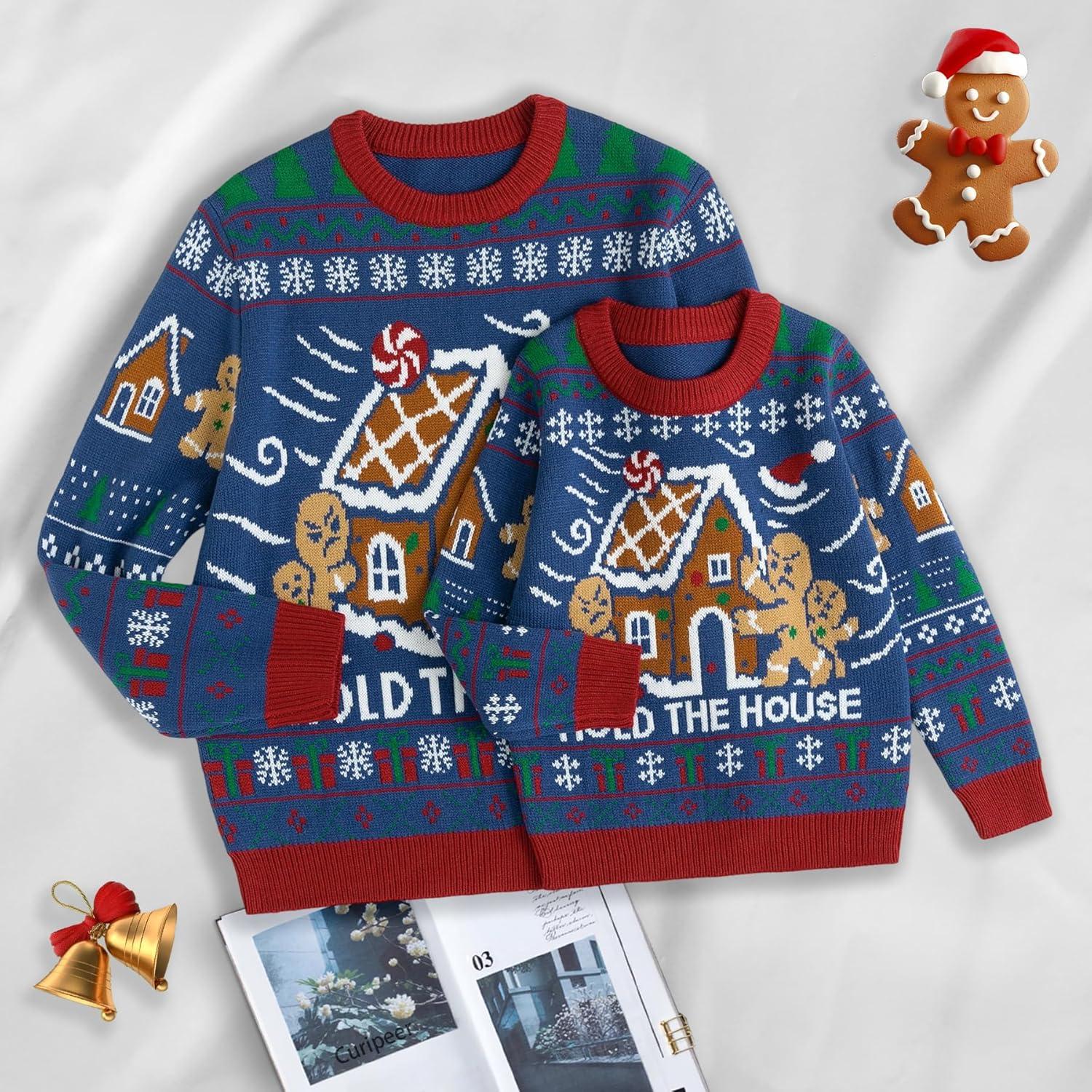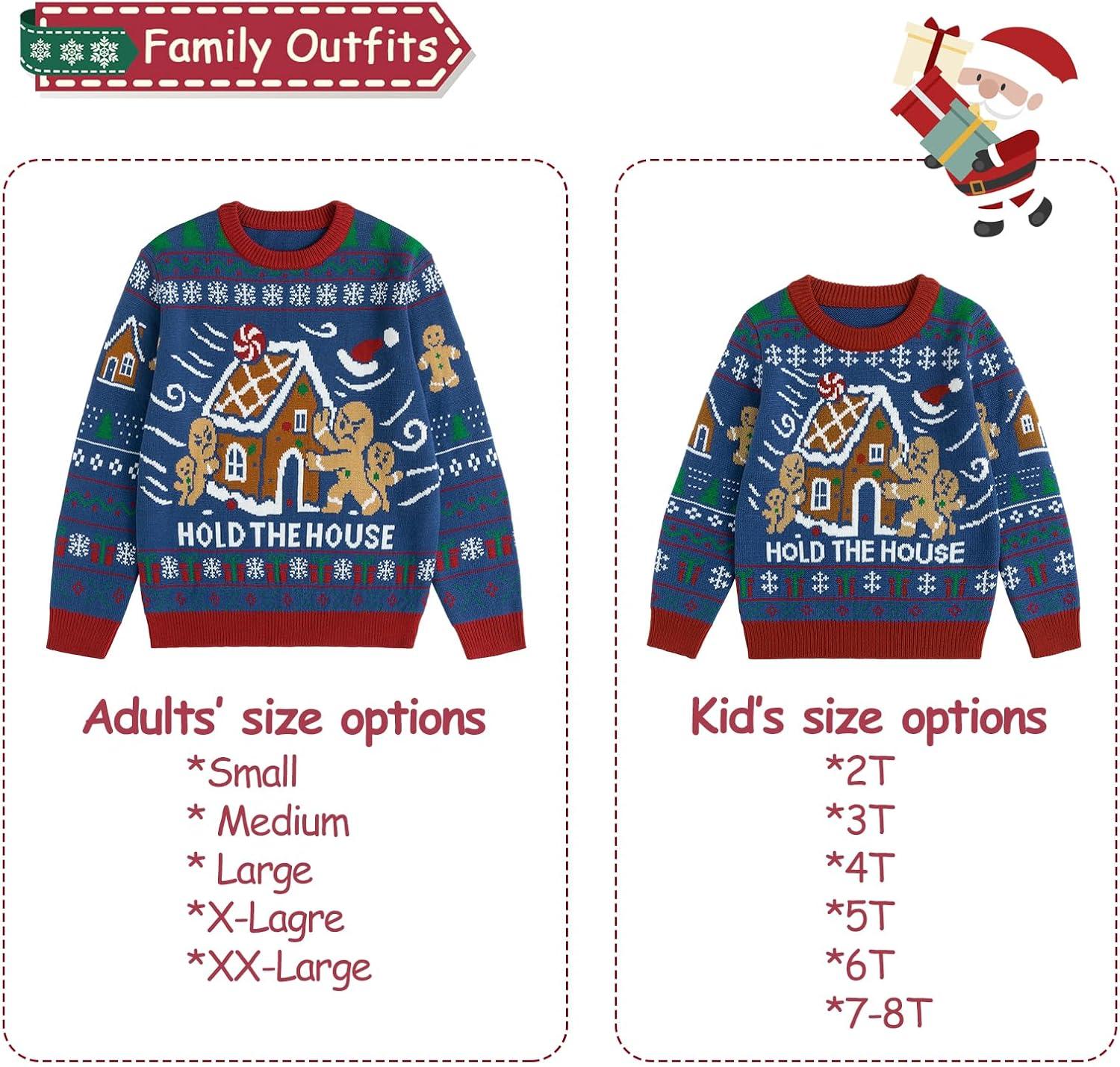 Simplee kids Ugly Christmas Sweater Family Matching Outfits for Holiday Party Knitted Pullover(Navy Wooden House)