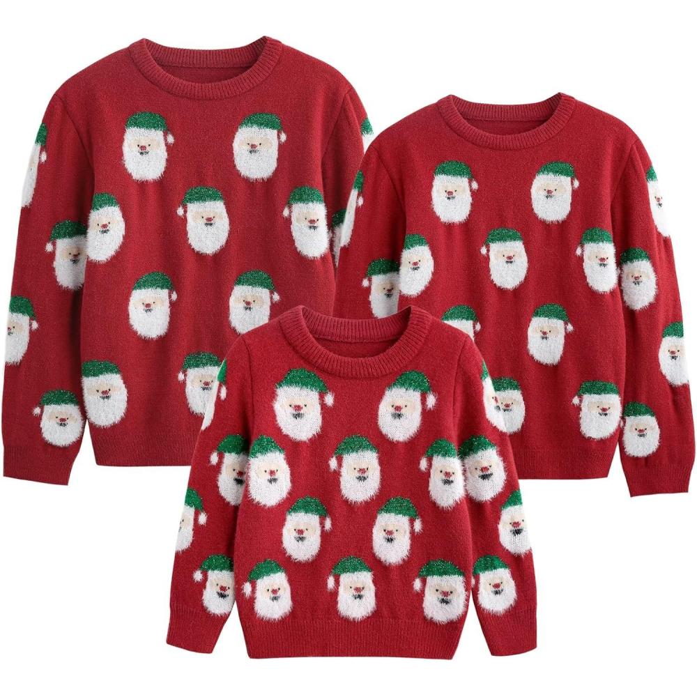 Simplee kids Ugly Christmas Sweater Family Matching Outfits for Holiday Party Knitted Pullover(Santa-red)