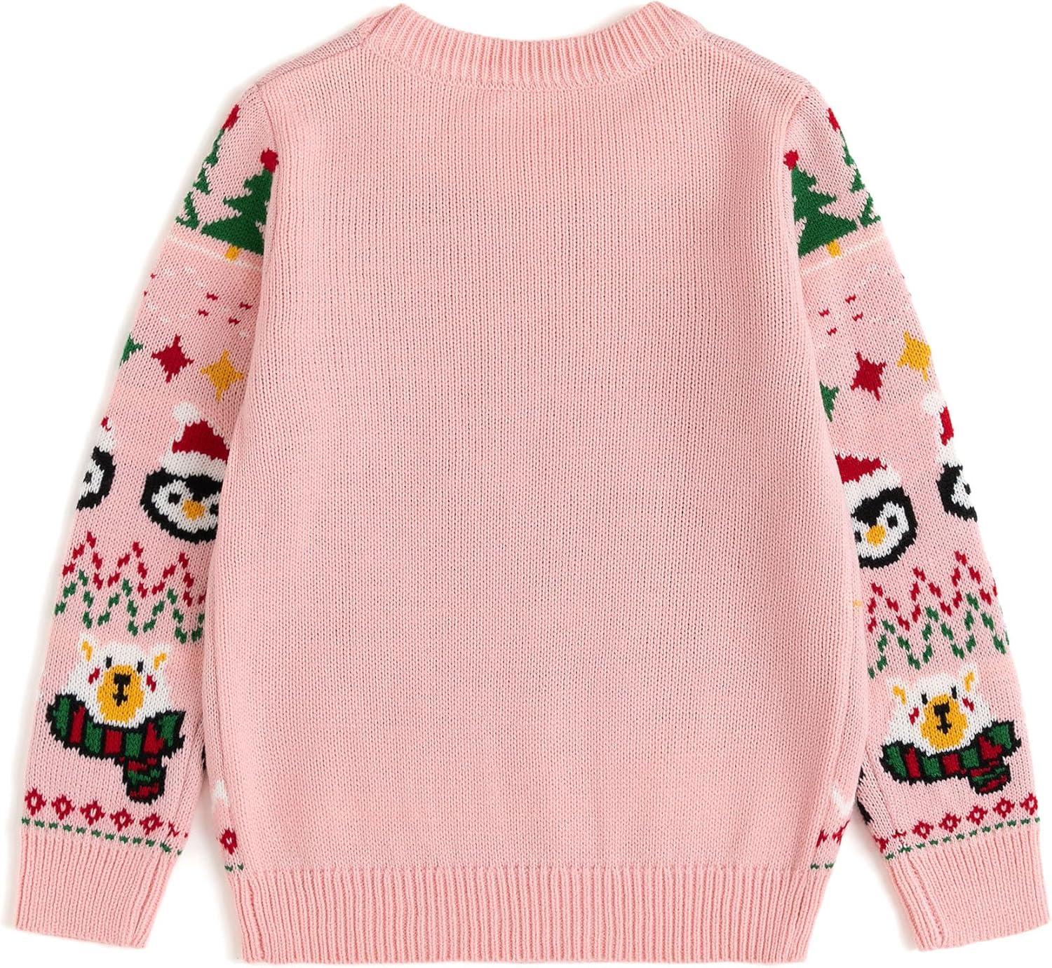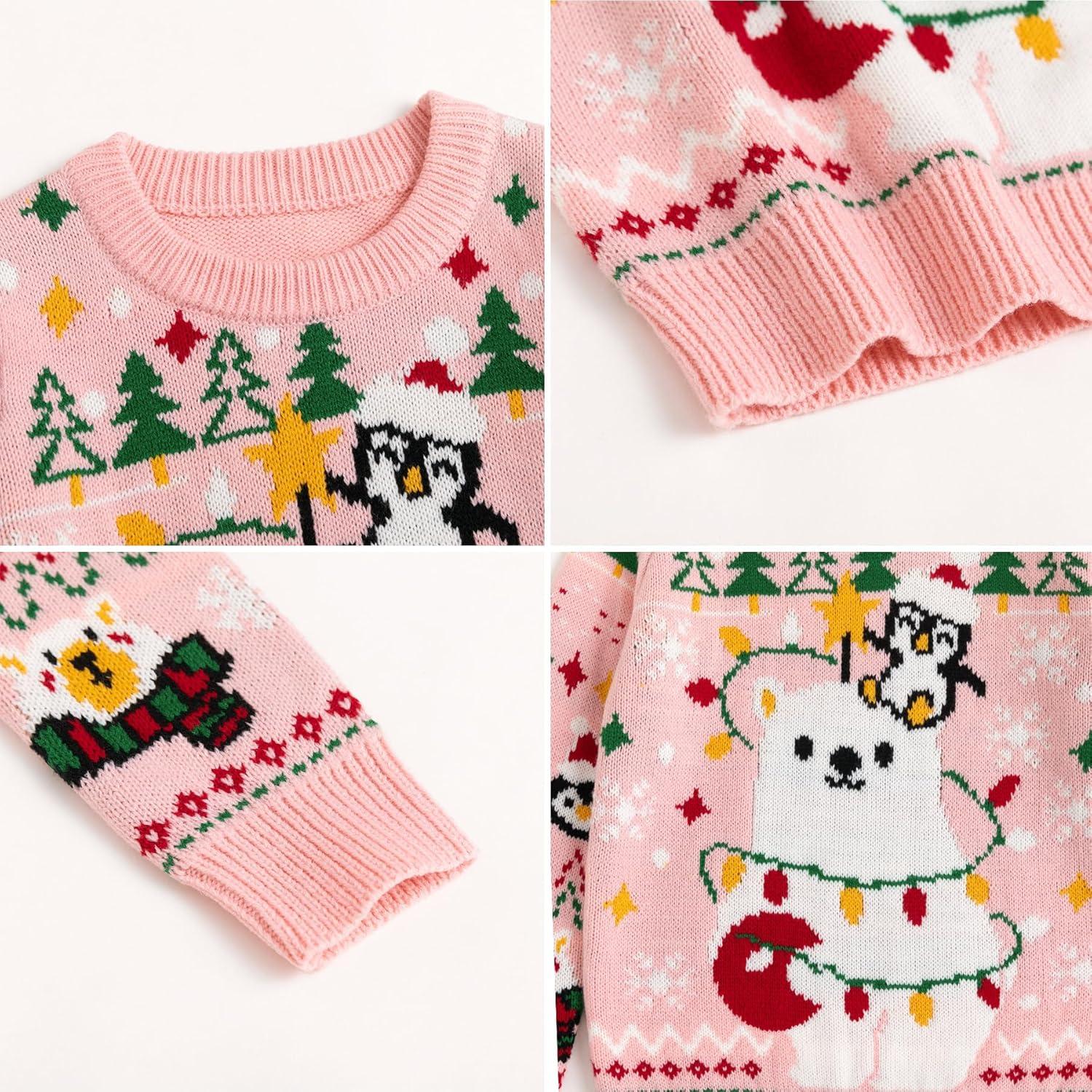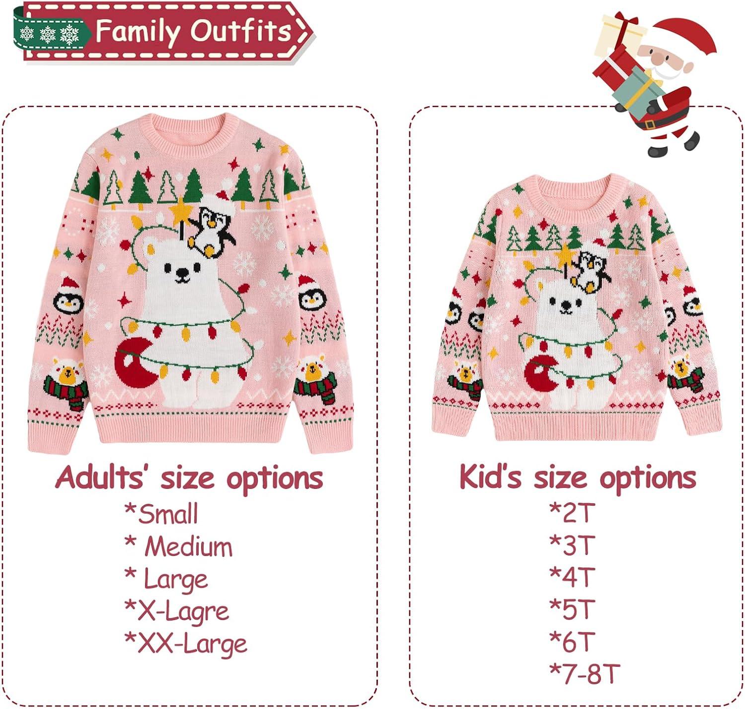 Simplee kids Ugly Christmas Sweater Family Matching Outfits for Women Men Party Sweaters Knitted Pullover(Snowbear-pink)